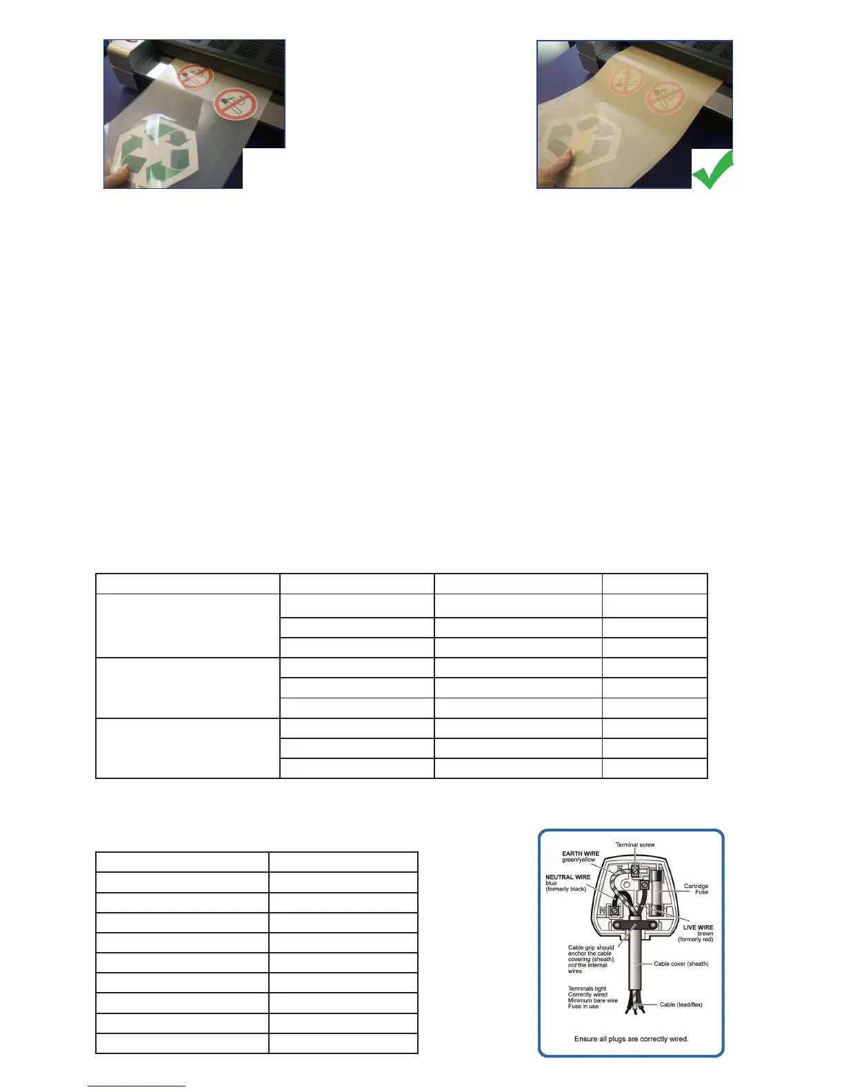 this is a guide only. Other factors can aect the laminator such as room temperature and the thickness of