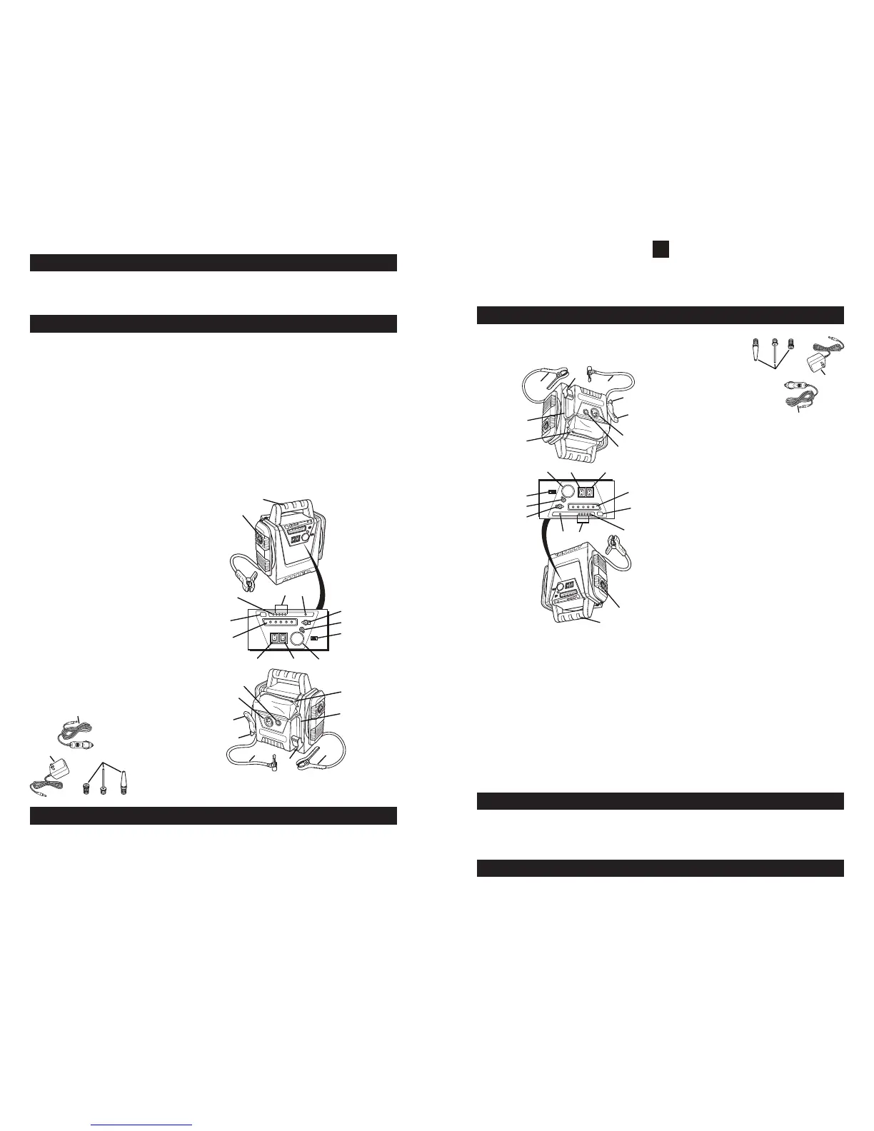Arranque con cables de puente a la batería integrado de 450 amps. (900 amps. pico) con almacenaje •