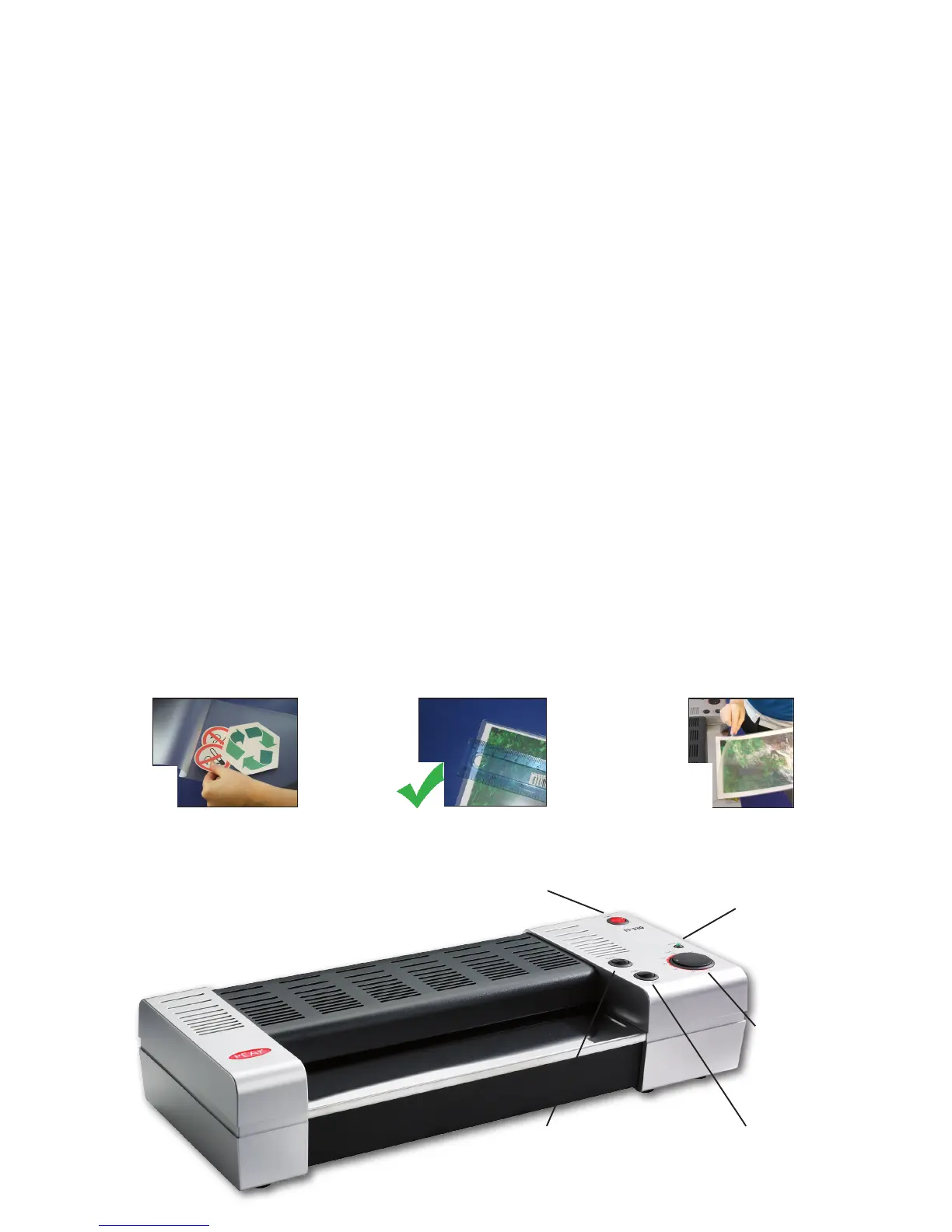 1) Carefully remove the laminator from all of its packaging and place it on a at, level surface. Make sure you