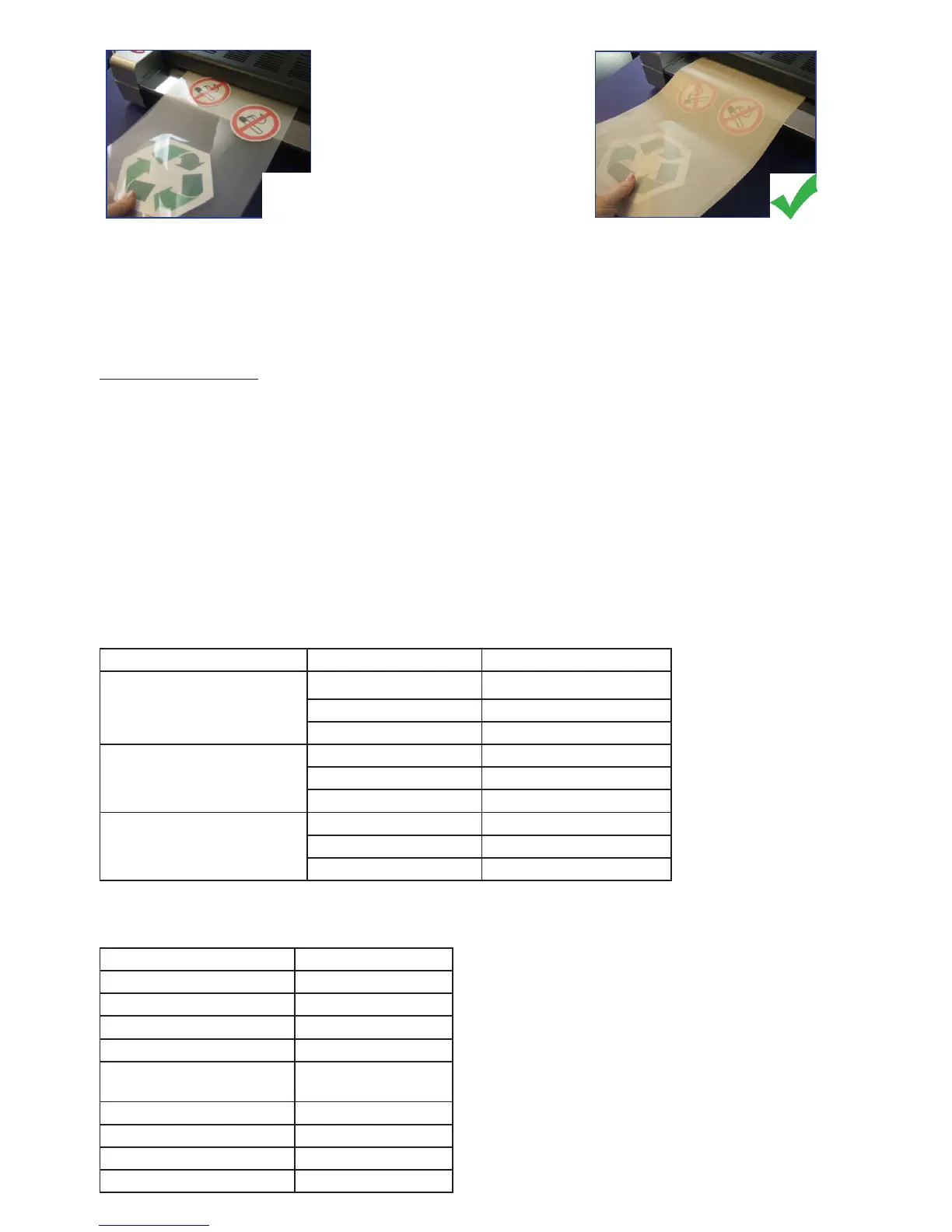 this is a guide only. Other factors can aect the laminator such as room temperature and the thickness of