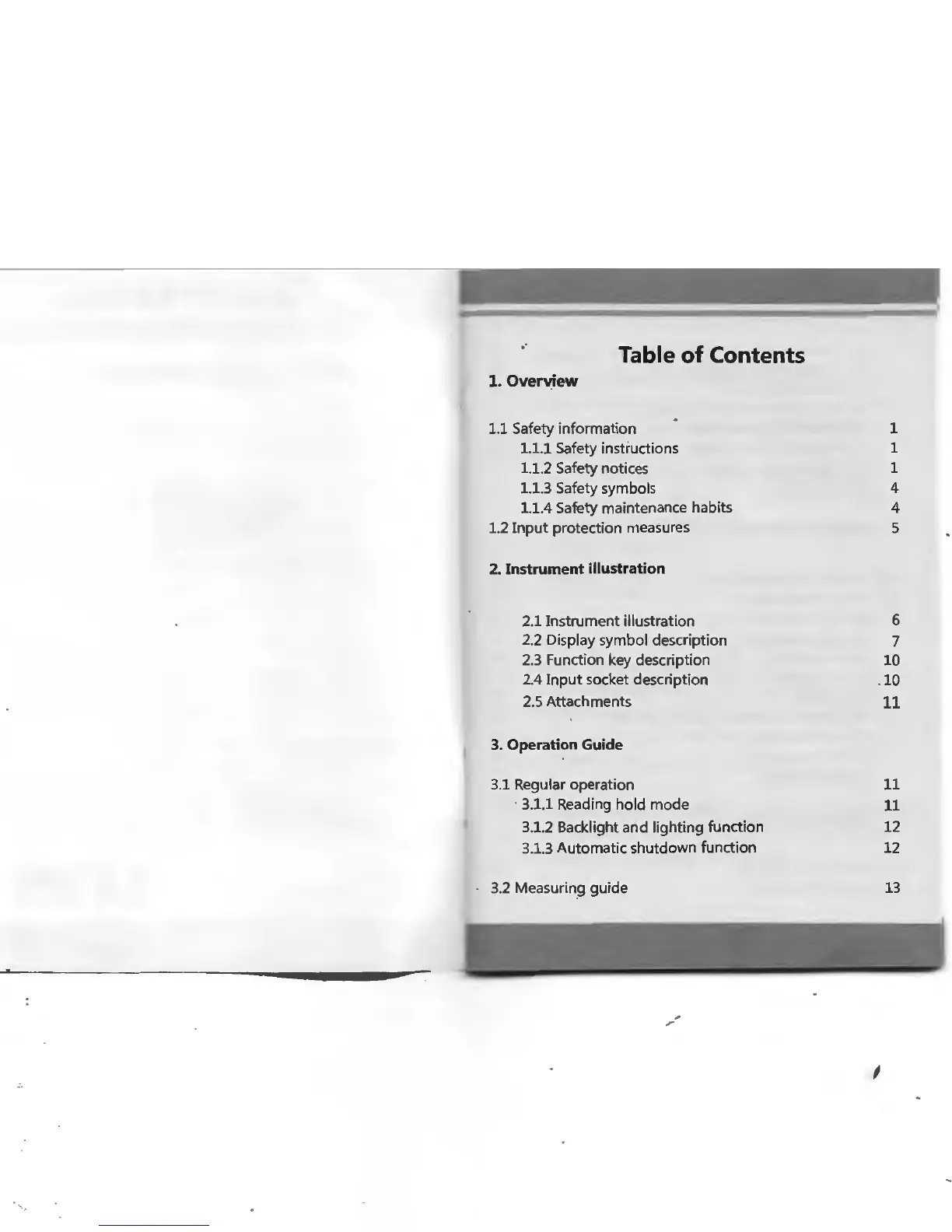 PEAKMETER PM16B - Overview of Digital Multimeter; Safety Information; Input Protection Measures; Instrument Illustration and Components