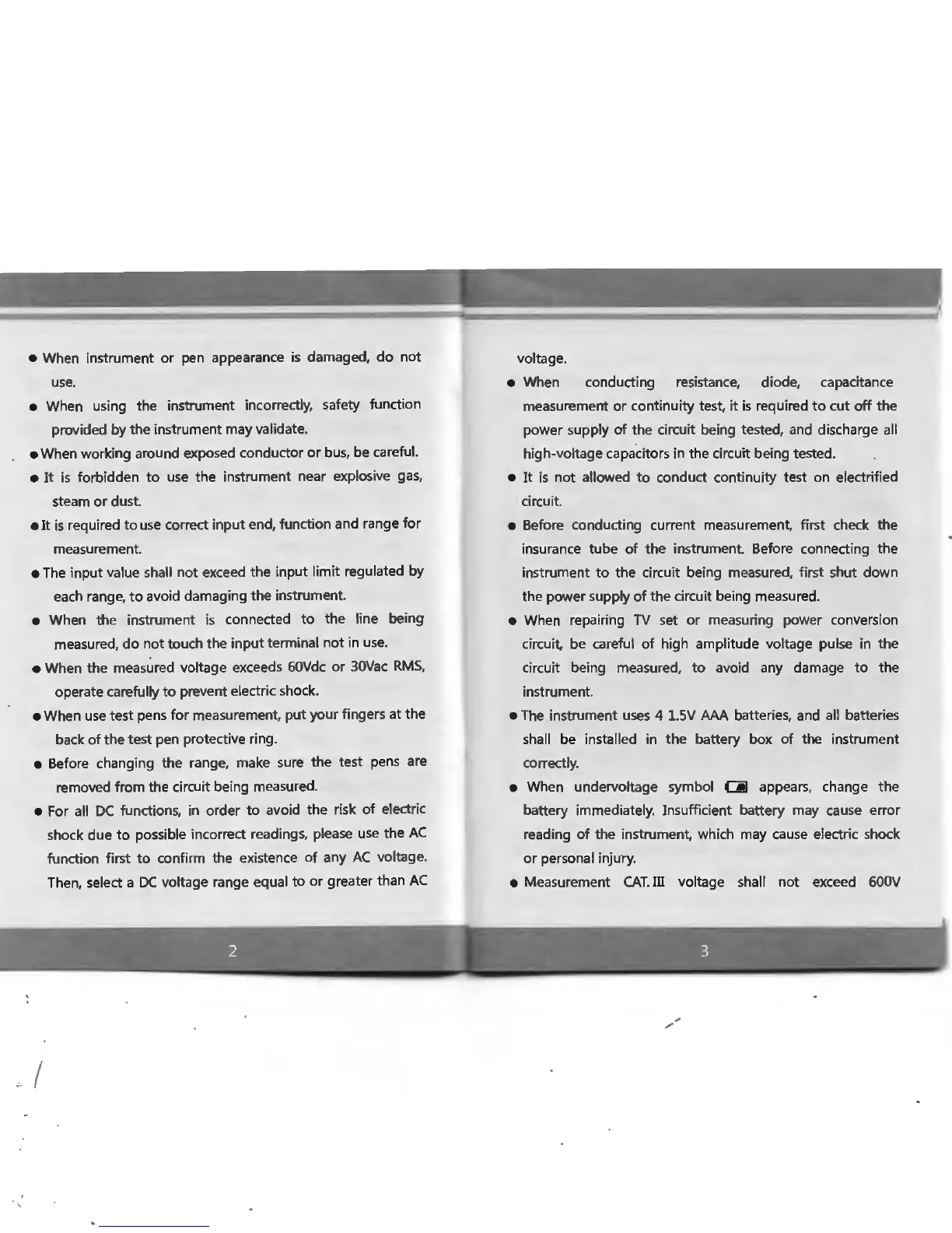 • When using the instrument incorrectly, safety function