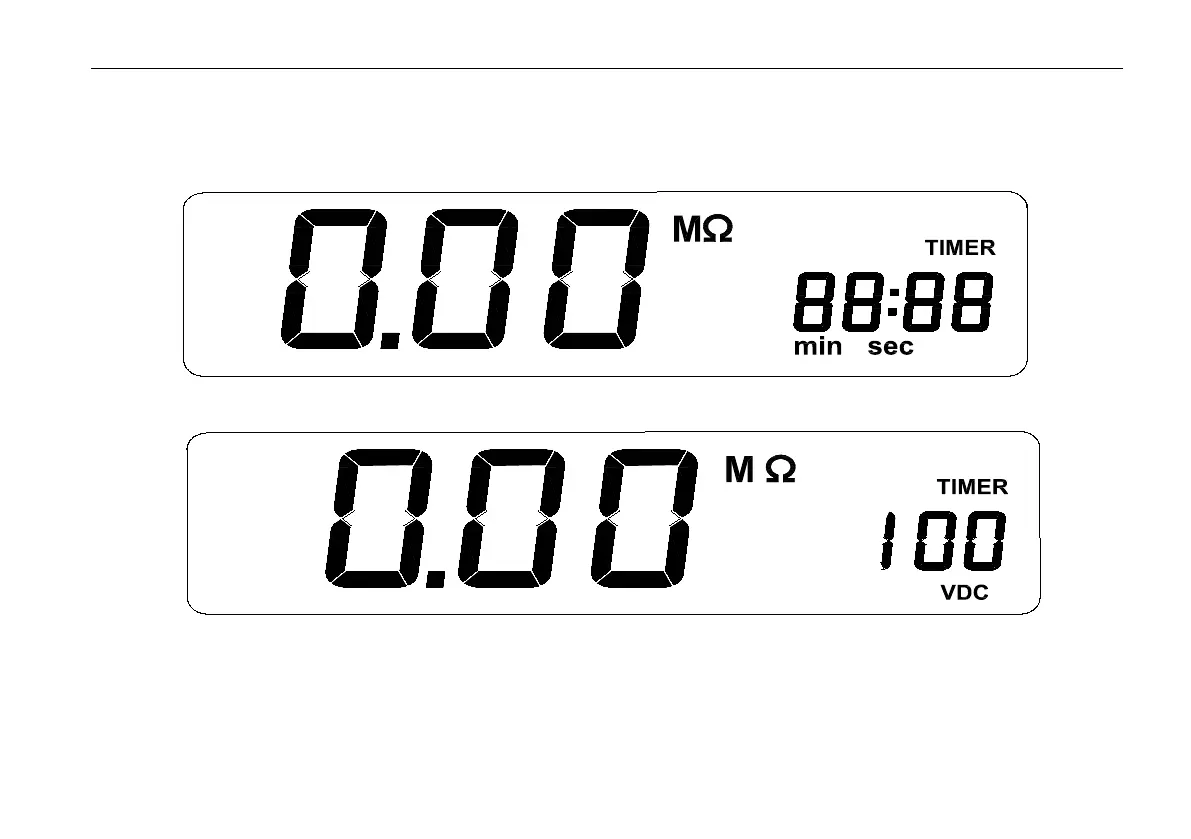 meter just display the test voltage when it is under the insulation test, to check the time, please press △ button.