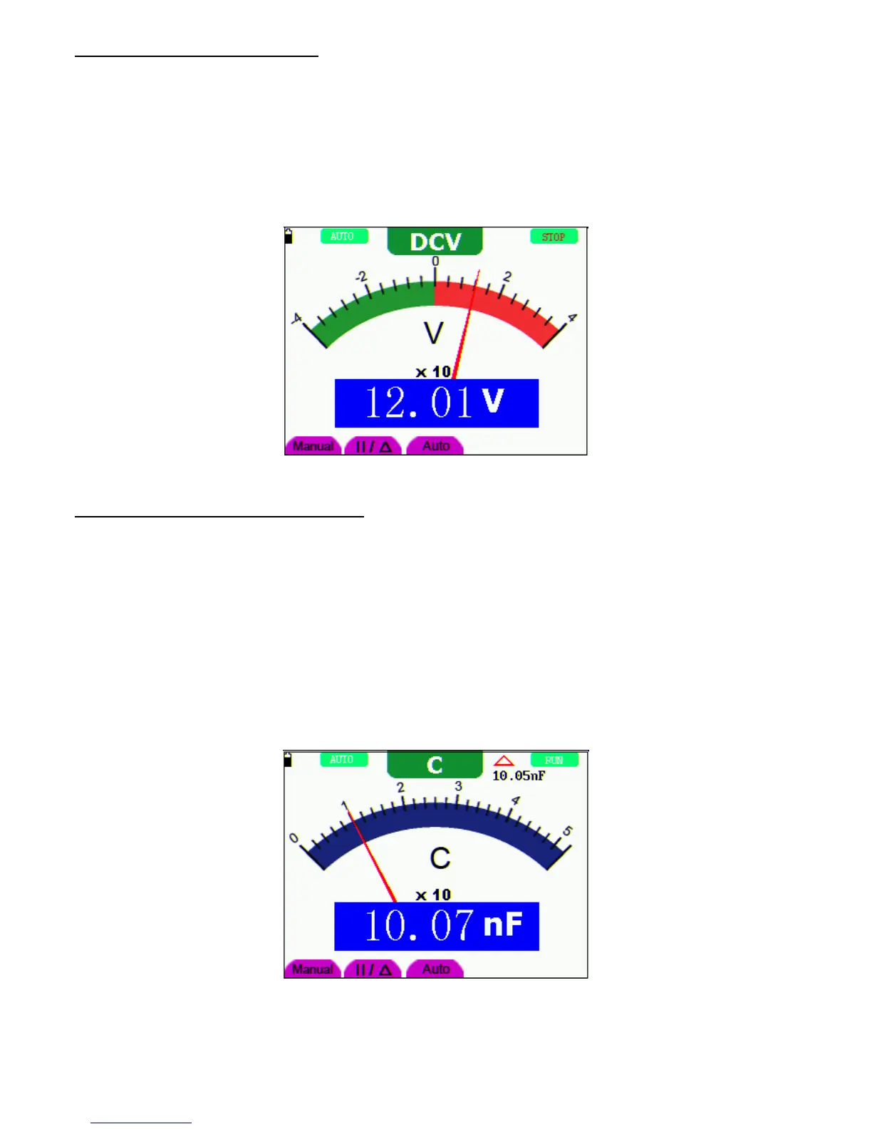 5.) Schließen Sie die zu messende Kapazität an; der Hauptmesswert auf dem Bildschirm ist der aktuelle