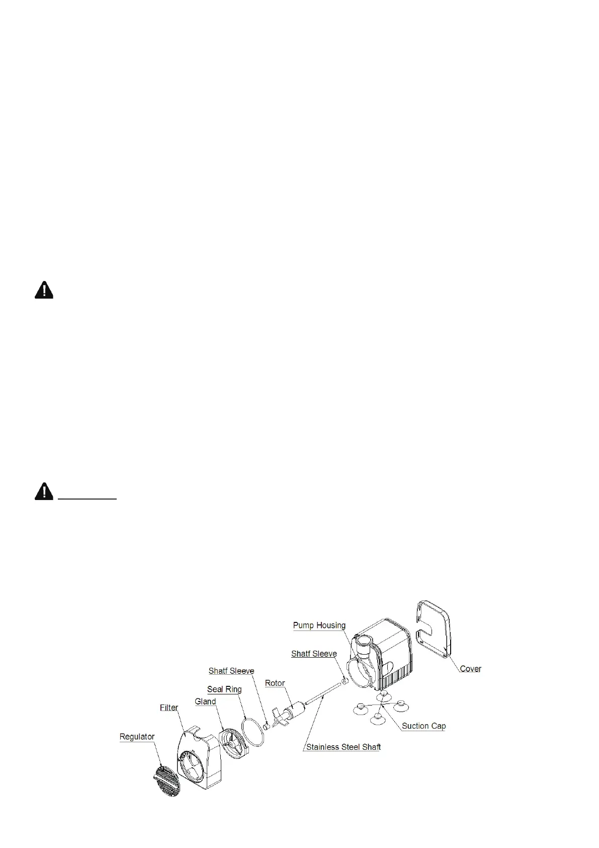 necting to the power source, make sure that the pump is assembled and completely submerged in water.