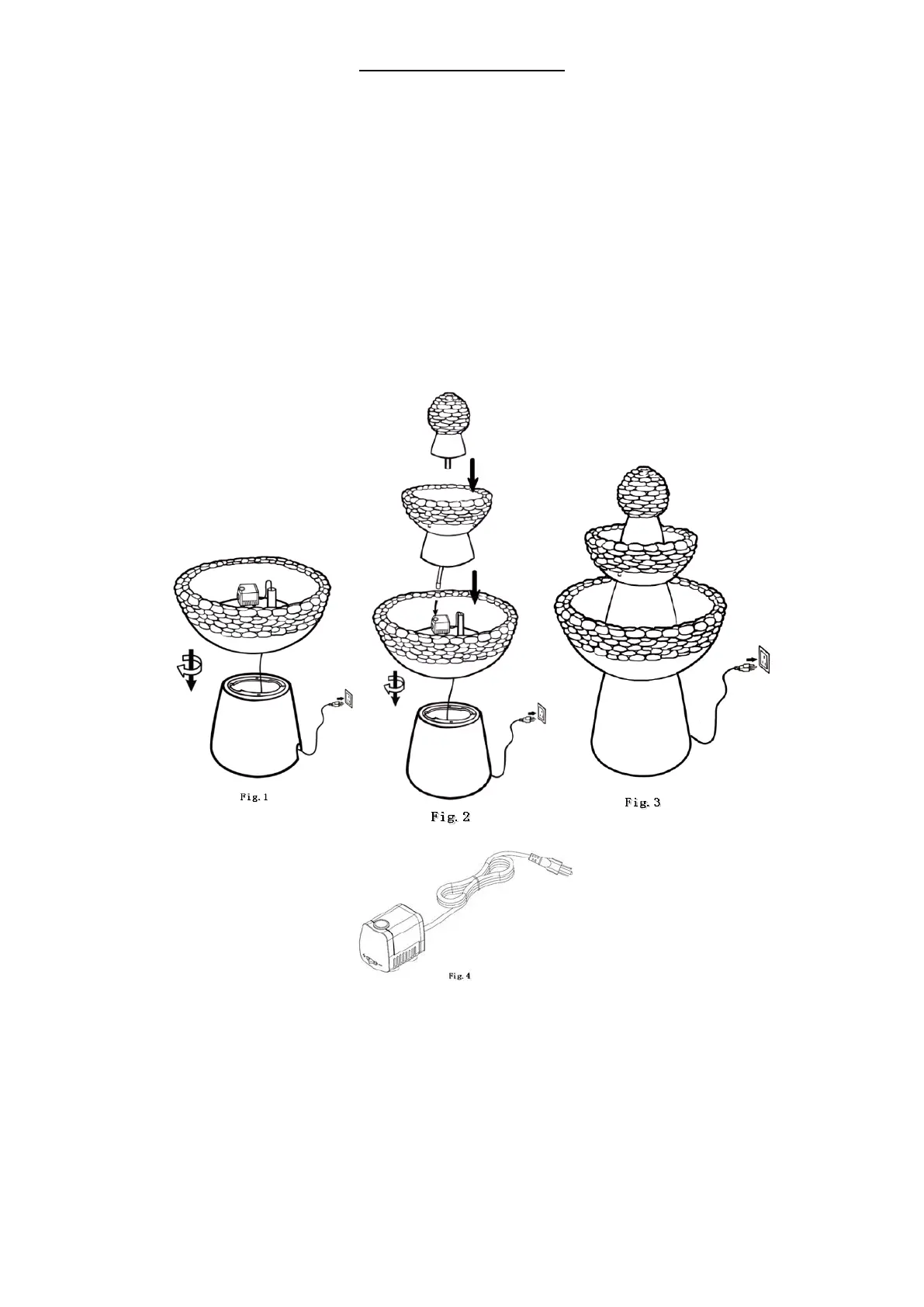 3. Place the pedestal on a flat, level surface, lead the power cord through the pipe in the middle of the fountain basin and through the hole of the