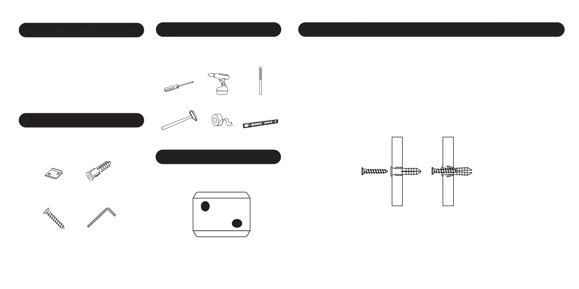 Install mounting plates onto the wall using the screws provided.
