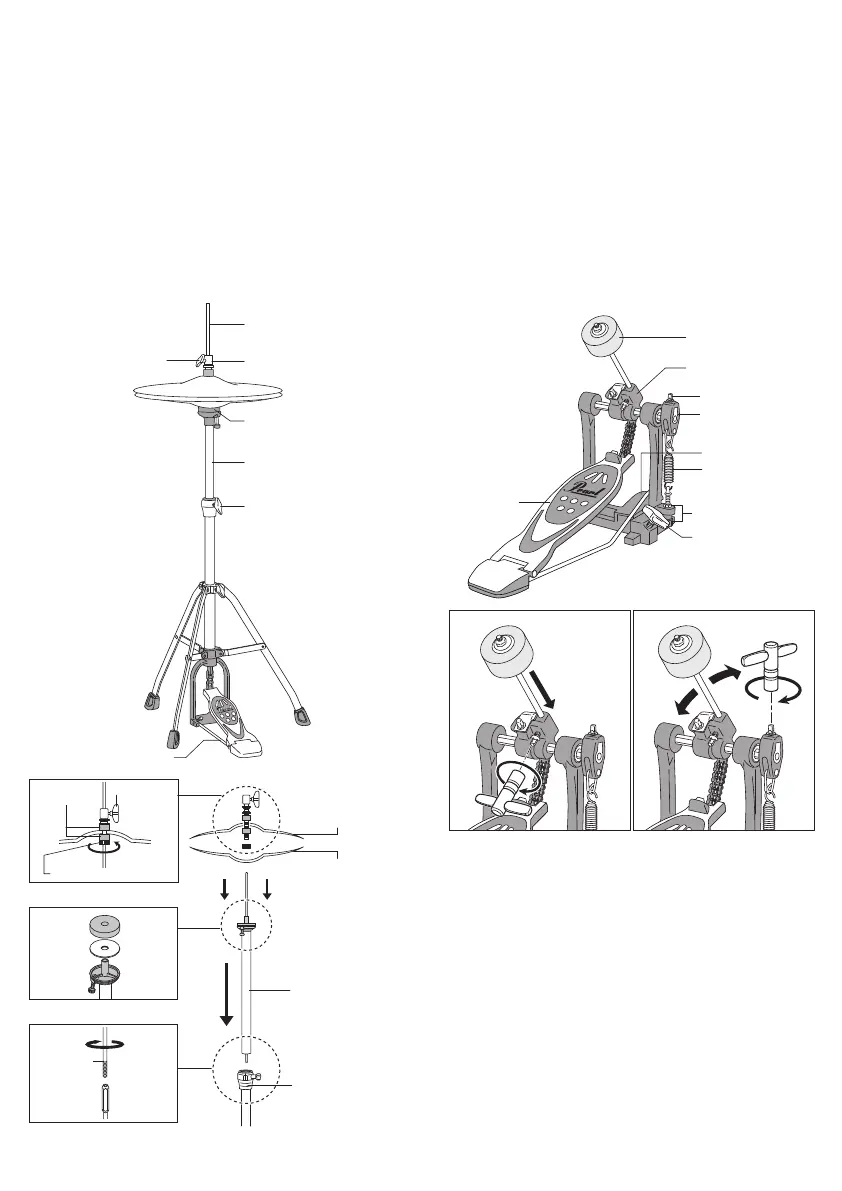 of the hi-hat base (Fig.14). Thread the upper pull rod into