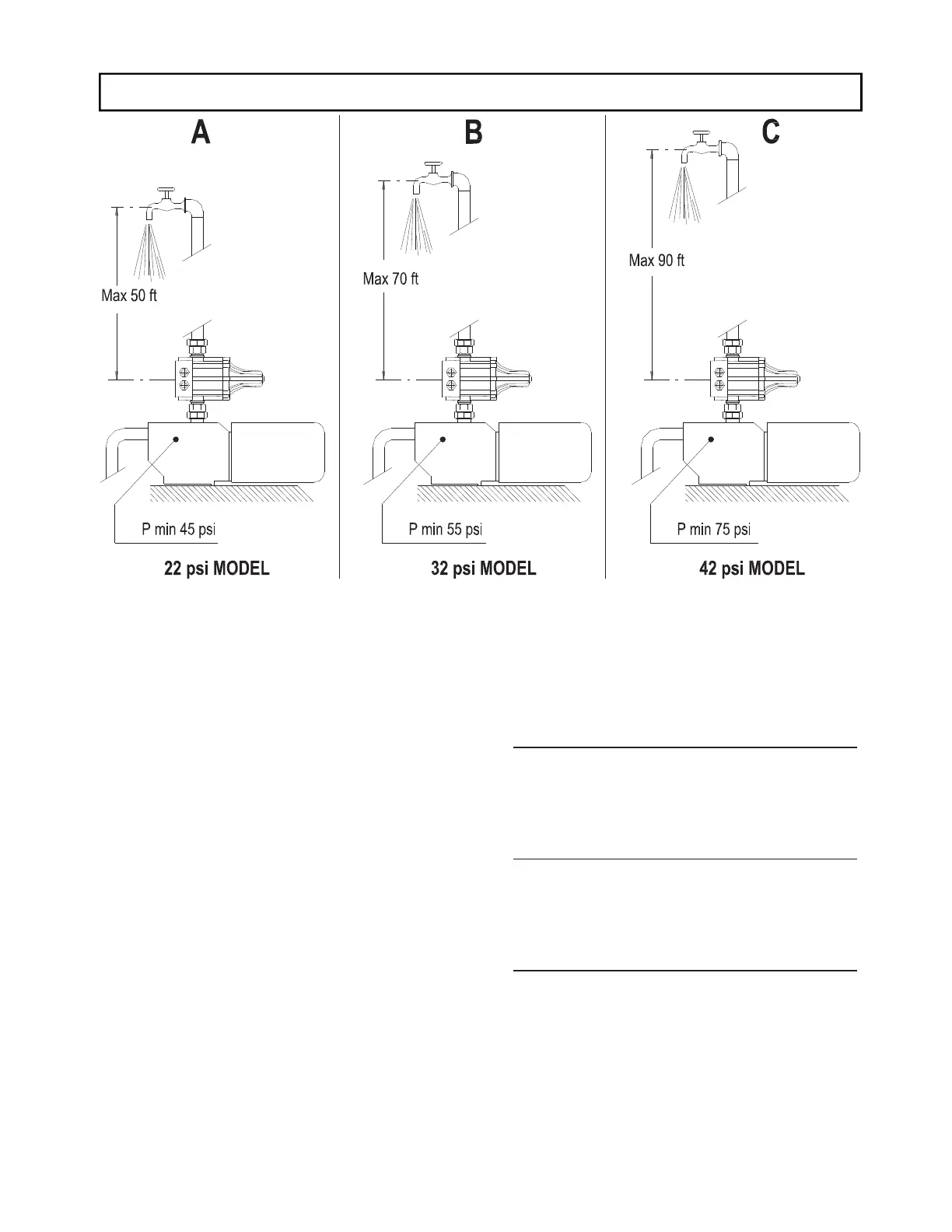The column of water between BEST CONTROL and the highest tap must not exceed 90 feet.