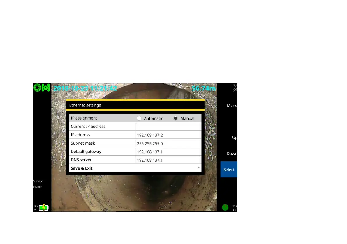 Ethernet settings: Use this screen to set whether the controller’s IP assignment is automatic or set