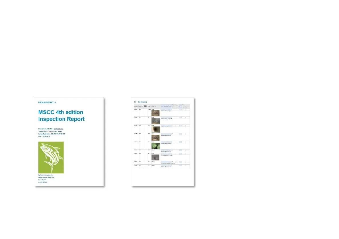 report also includes observation photos and a drain/sewer diagram or manhole/inspection chamber
