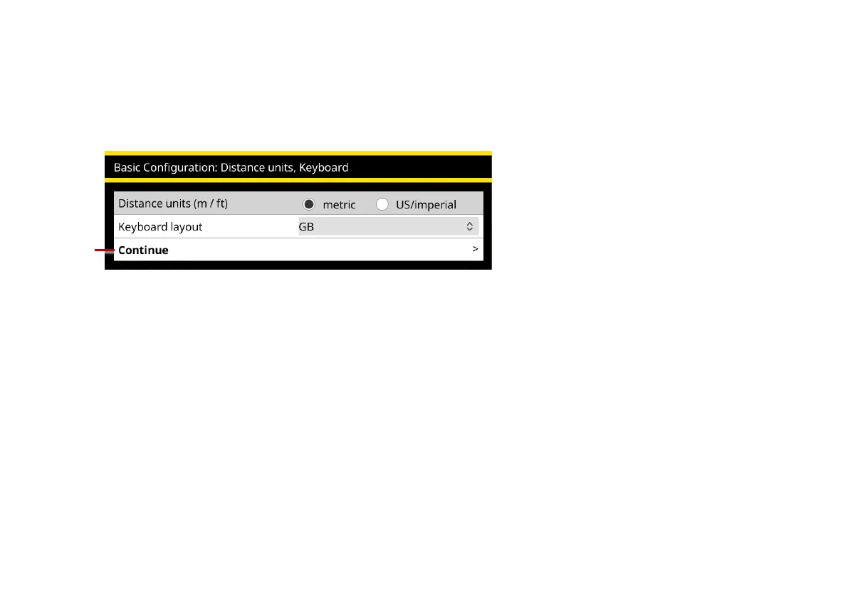 Fig. 5.4 Basic Configuration: Distance units and keyboard. 1 Continue menu item.