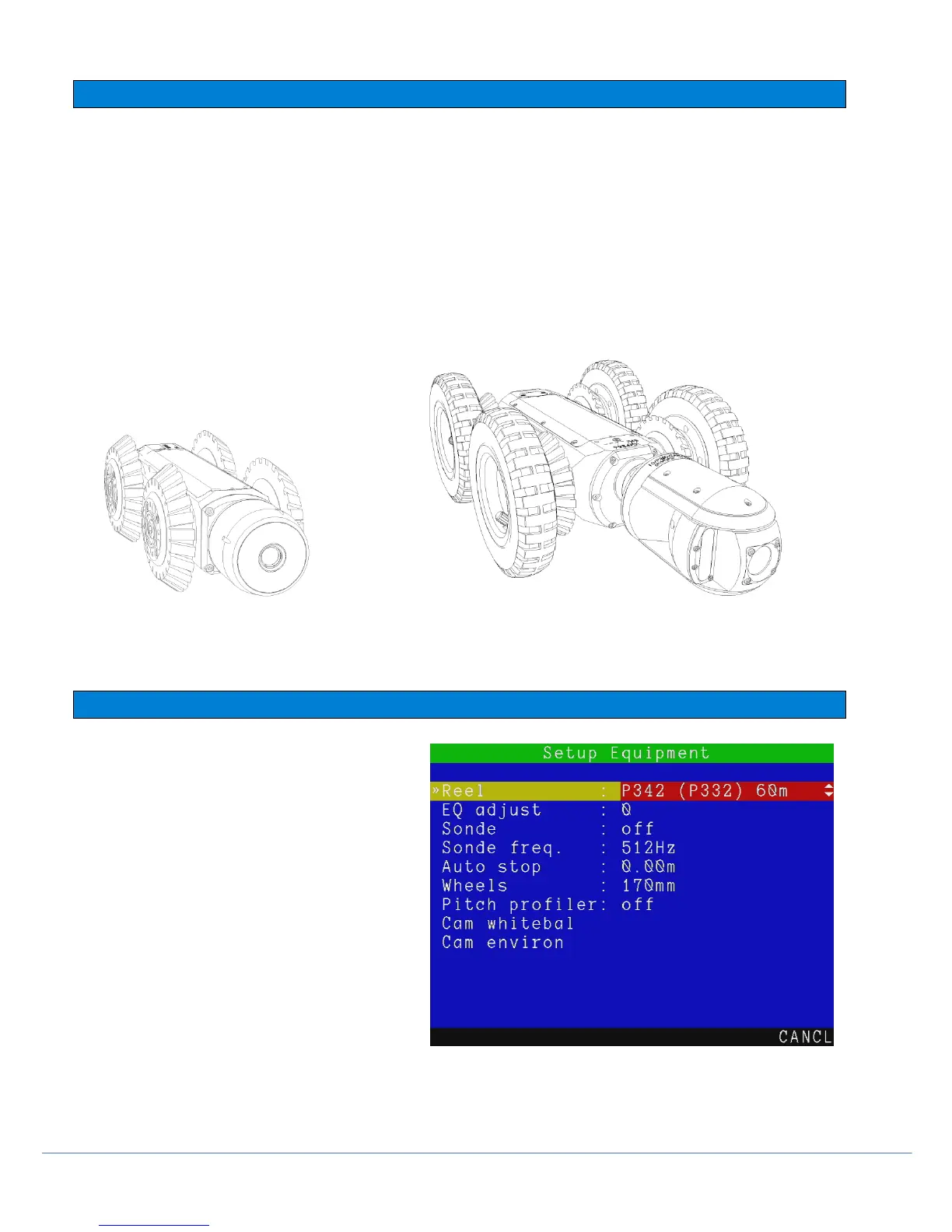 diameter). Both crawlers are compatible with a choice of three cameras. The P350-CAM-FW is a fixed, forward view