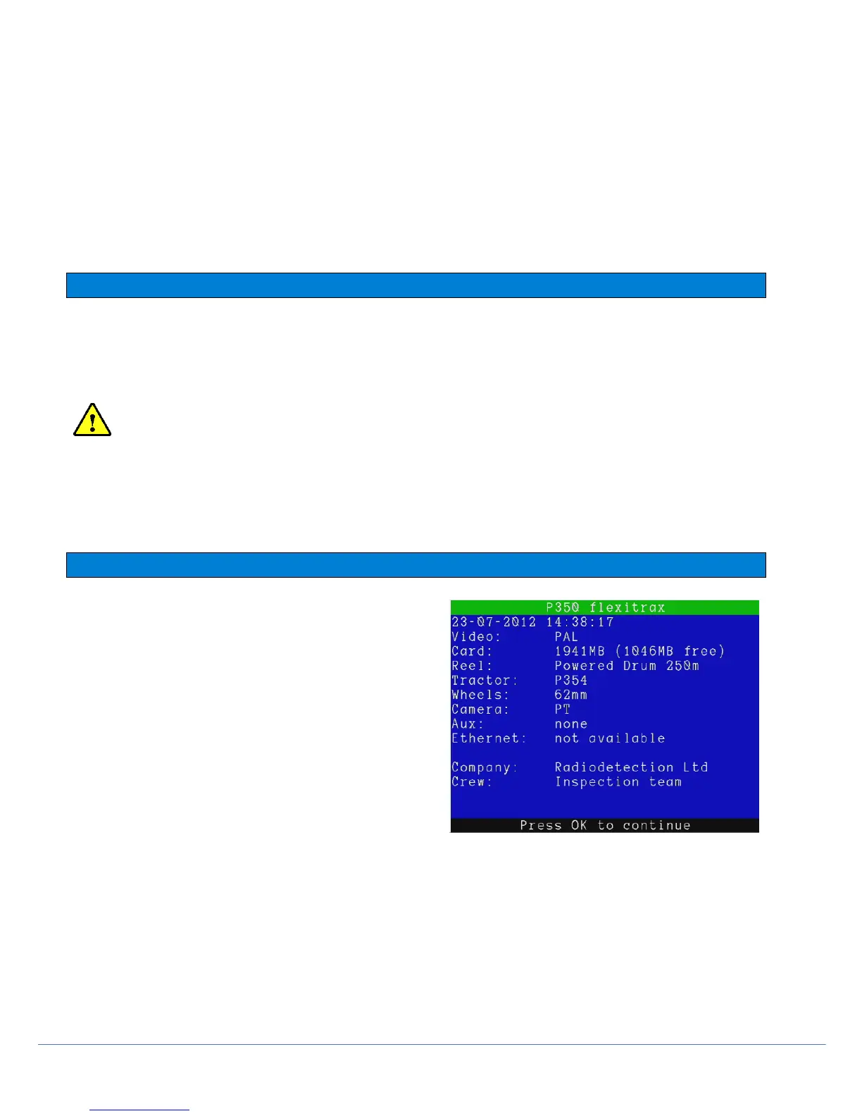 At start up the P350 system will automatically check the