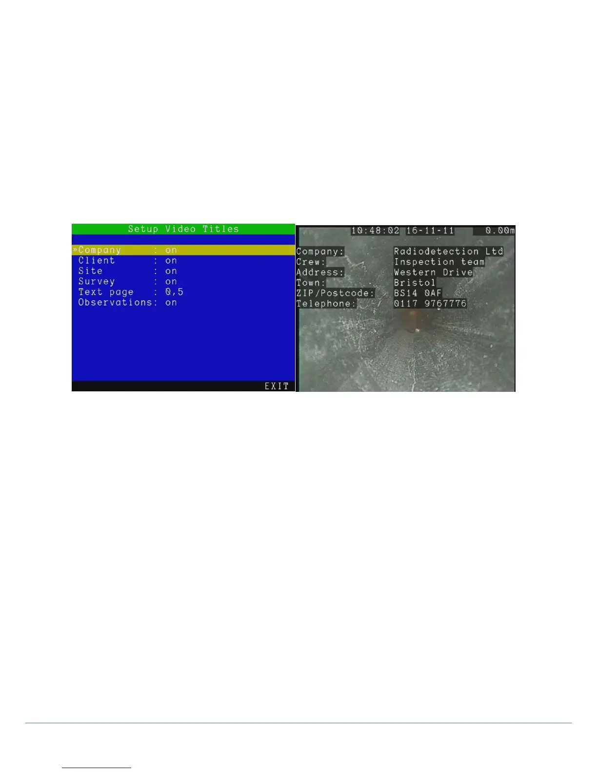 Enter this menu to add company and survey text and information to your recorded video (see figure 3.10).