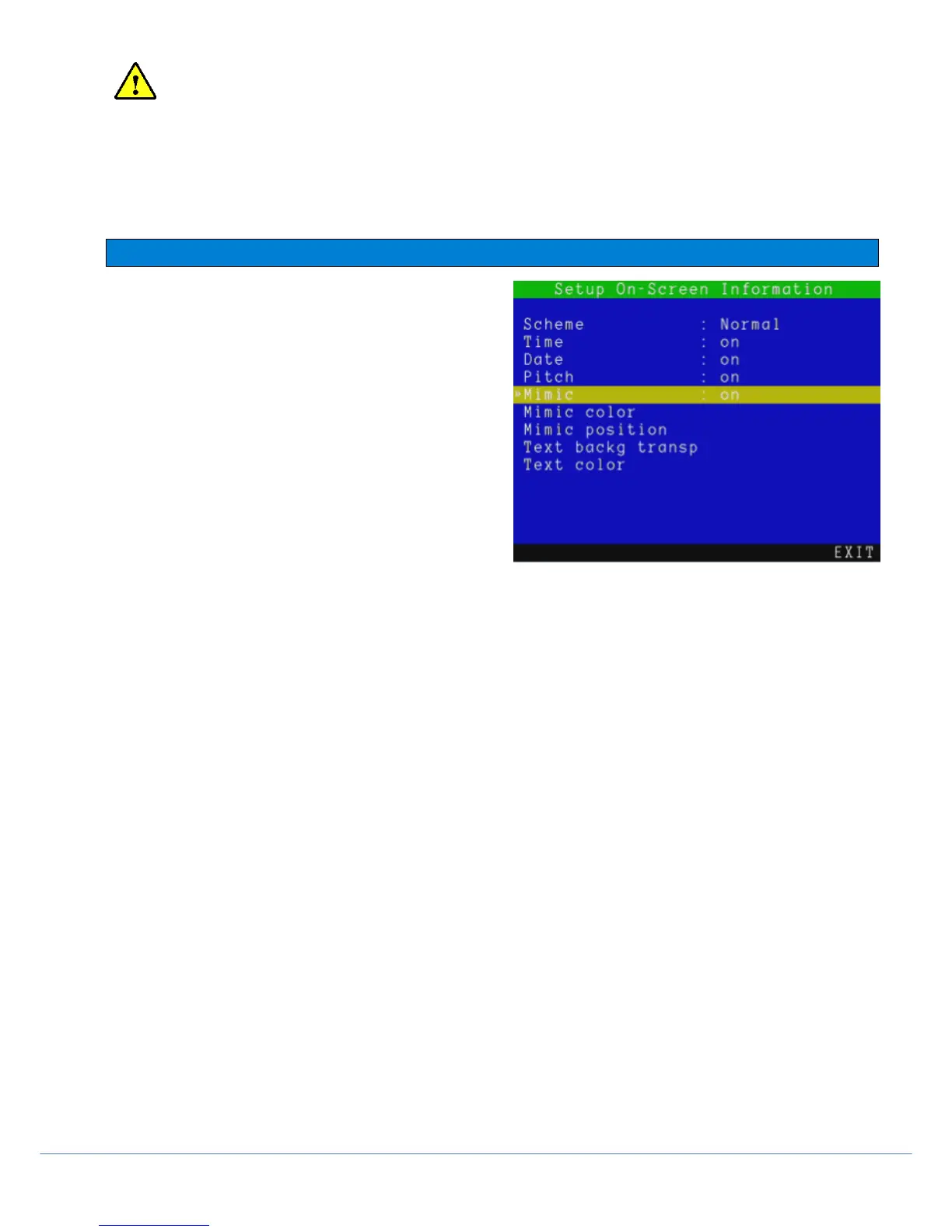 Mimic: ON or OFF to display or hide the mimic display (PT and PTZ cameras only)