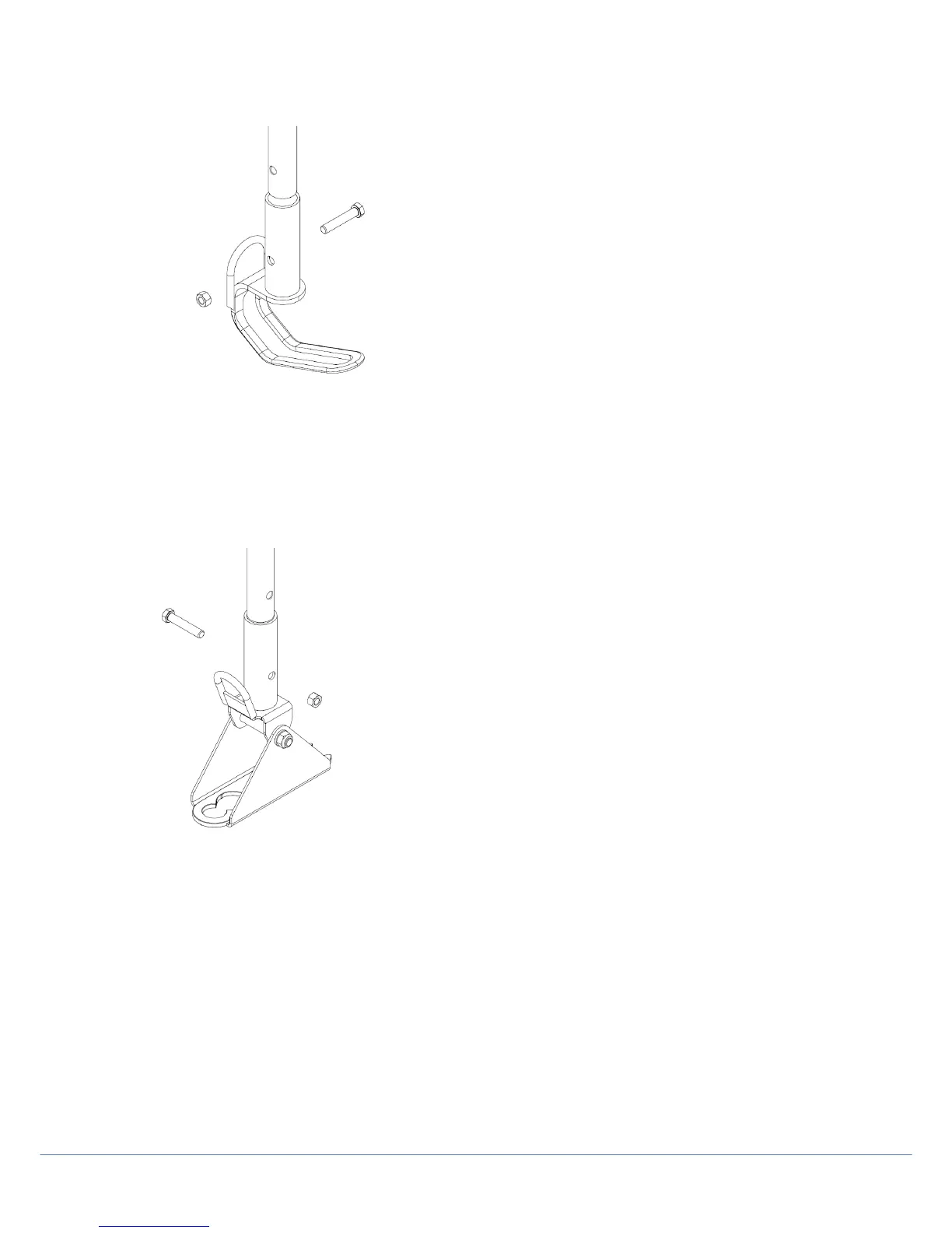 Attach the elevator cradle, fig.4.5, to the bottom pole using using the screw (3/8-16 UNC 2" HEX HD SS) and nut