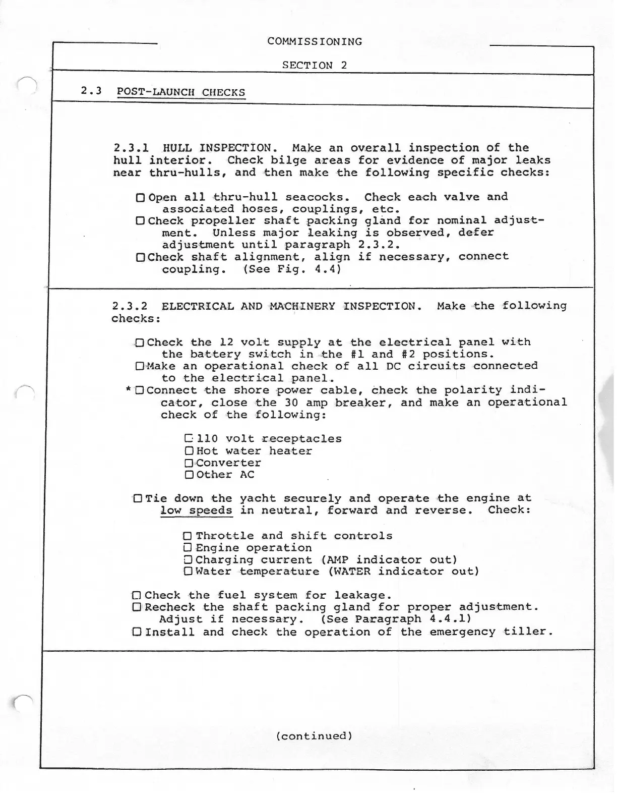 Pearson 303 - Post-Launch Checks; Electrical and Machinery Inspection