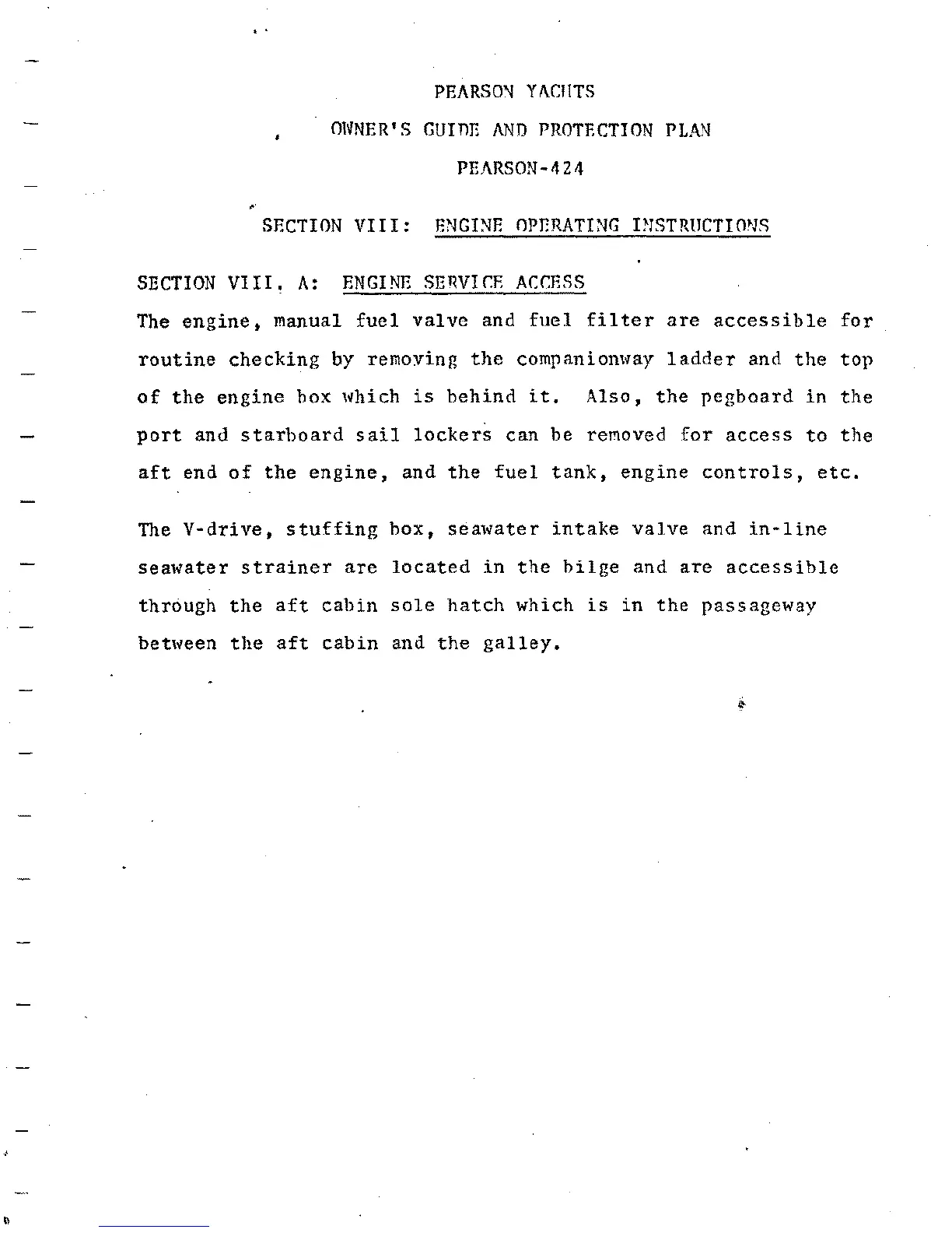Pearson 424 - Engine Operating Instructions; Engine Service Access
