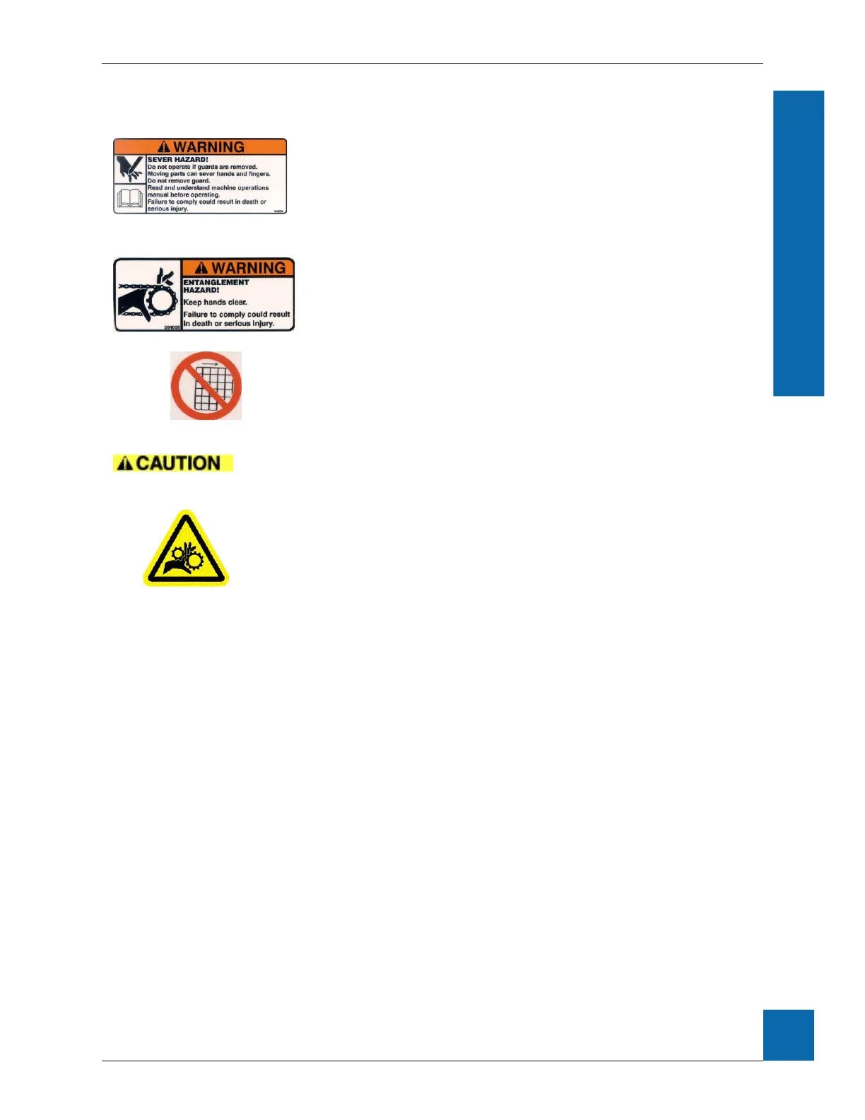 Warning! Entanglement Hazard! Keep hands clear.