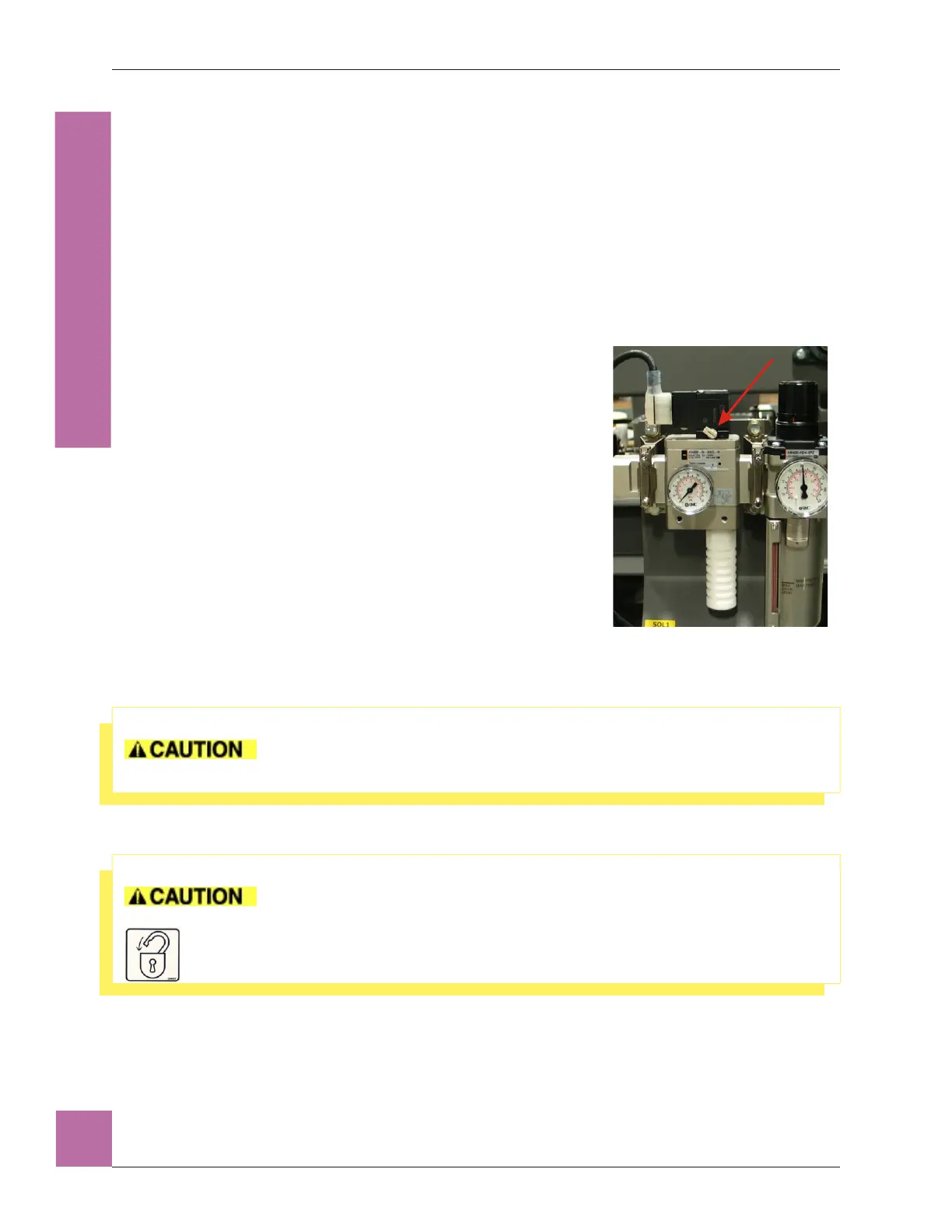 1. Once air is connected, manually lock air (open) onto machine. Check or