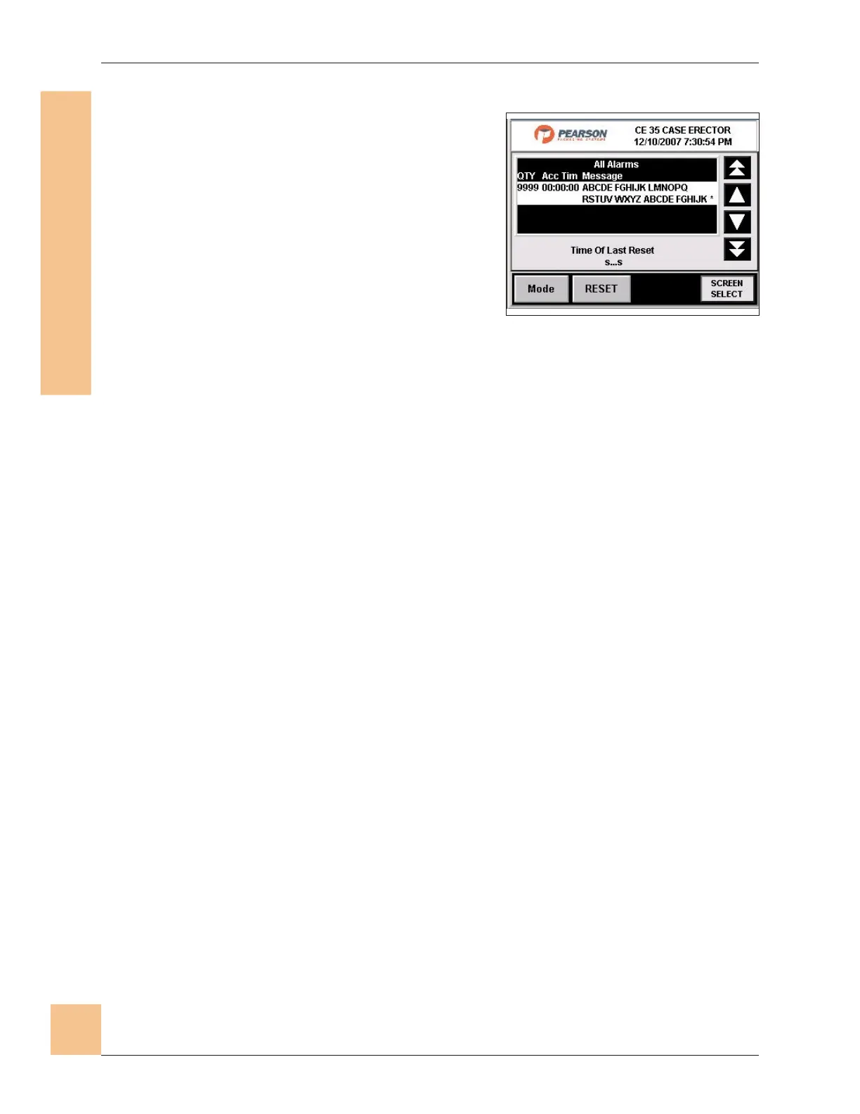 4. Use the double up/down arrows to page through the alarm list.