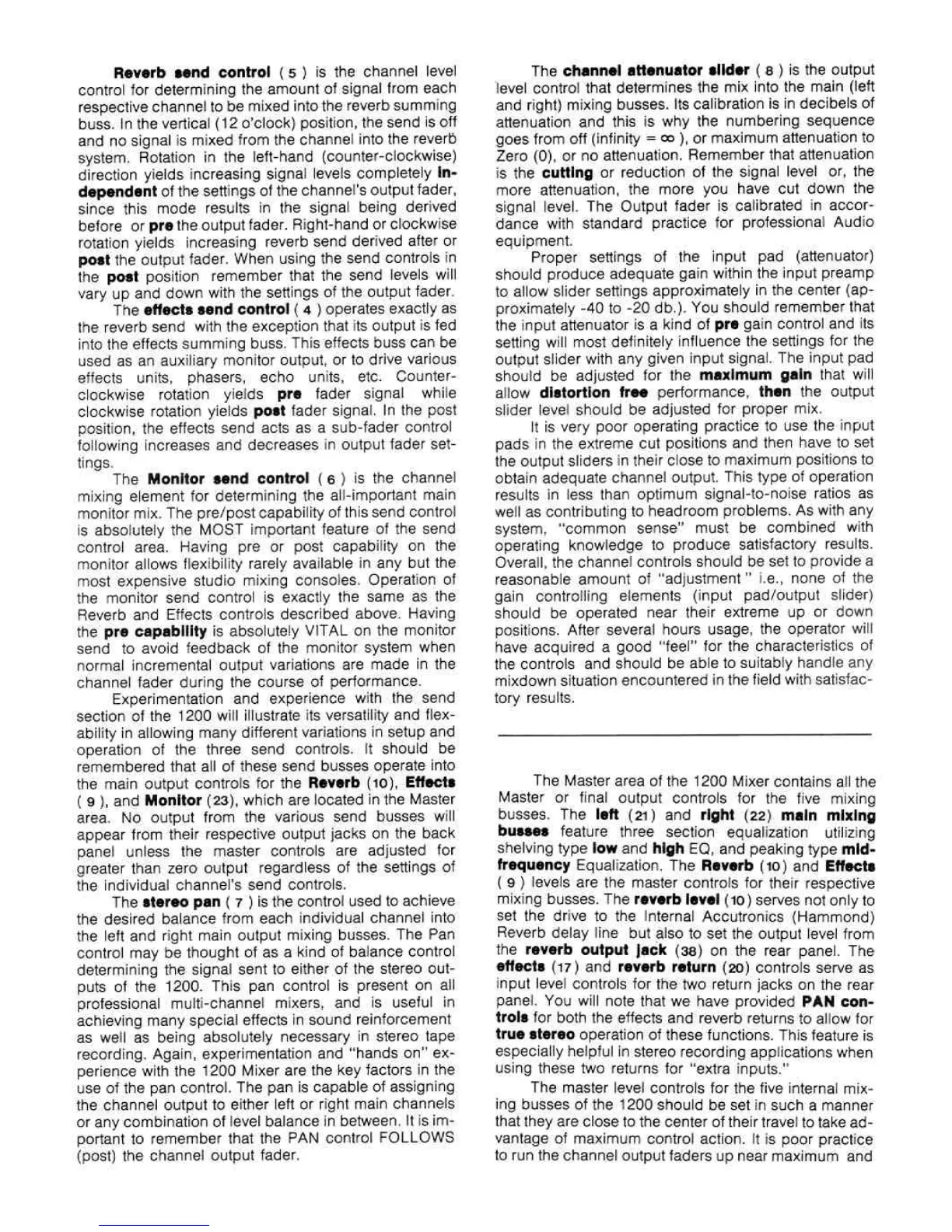 Peavey 1200 - Reverb Send Control; Monitor Send Control; Stereo Pan; Channel Attenuator Slider