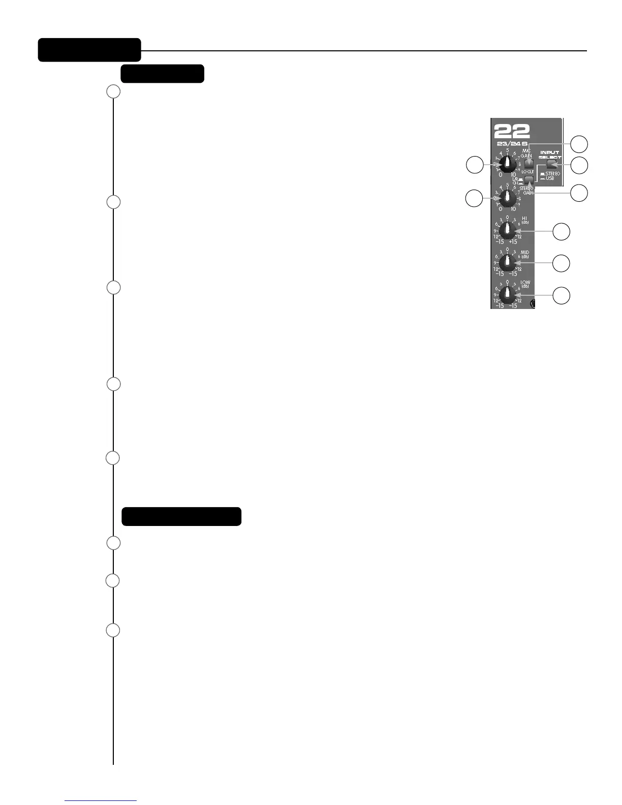 à “0”. Pour un réglage correct, appuyez sur le bouton PFL (12) et ajustez le gain