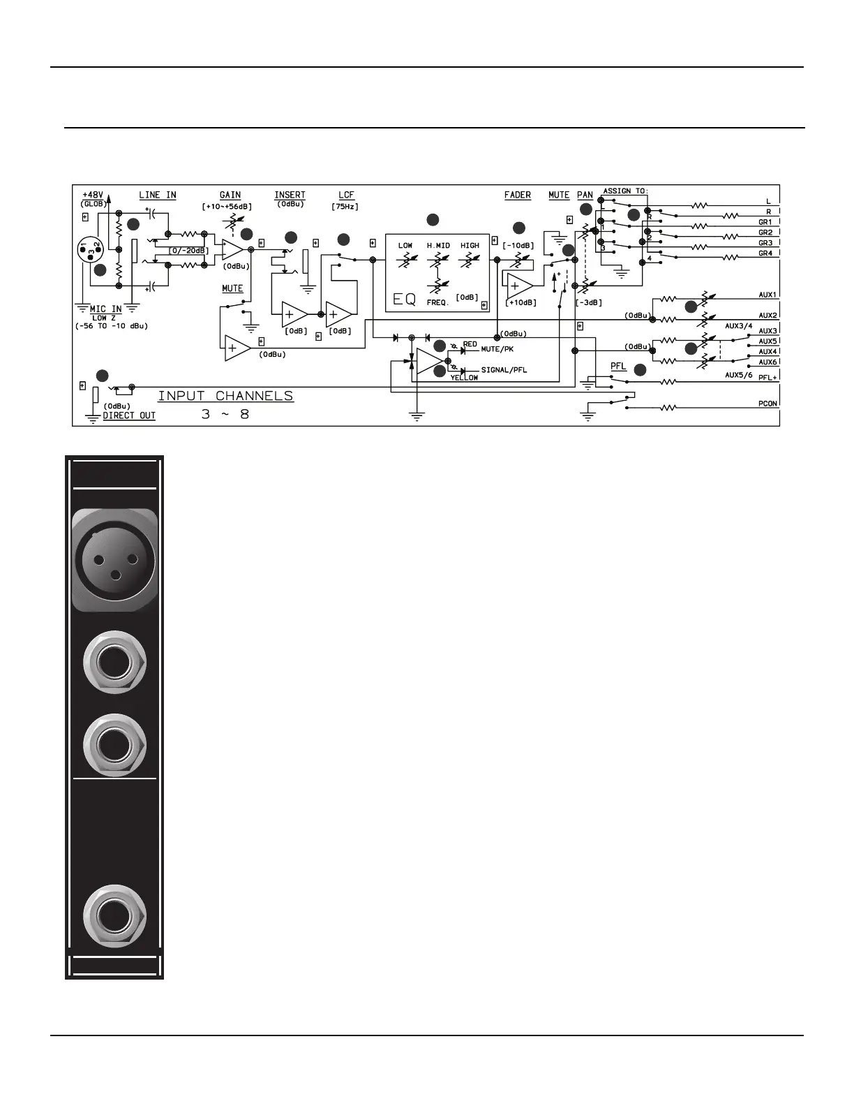 Input channels 3 through 8 include the same features as channels 1 & 2, with the following exceptions. The rear panel phase