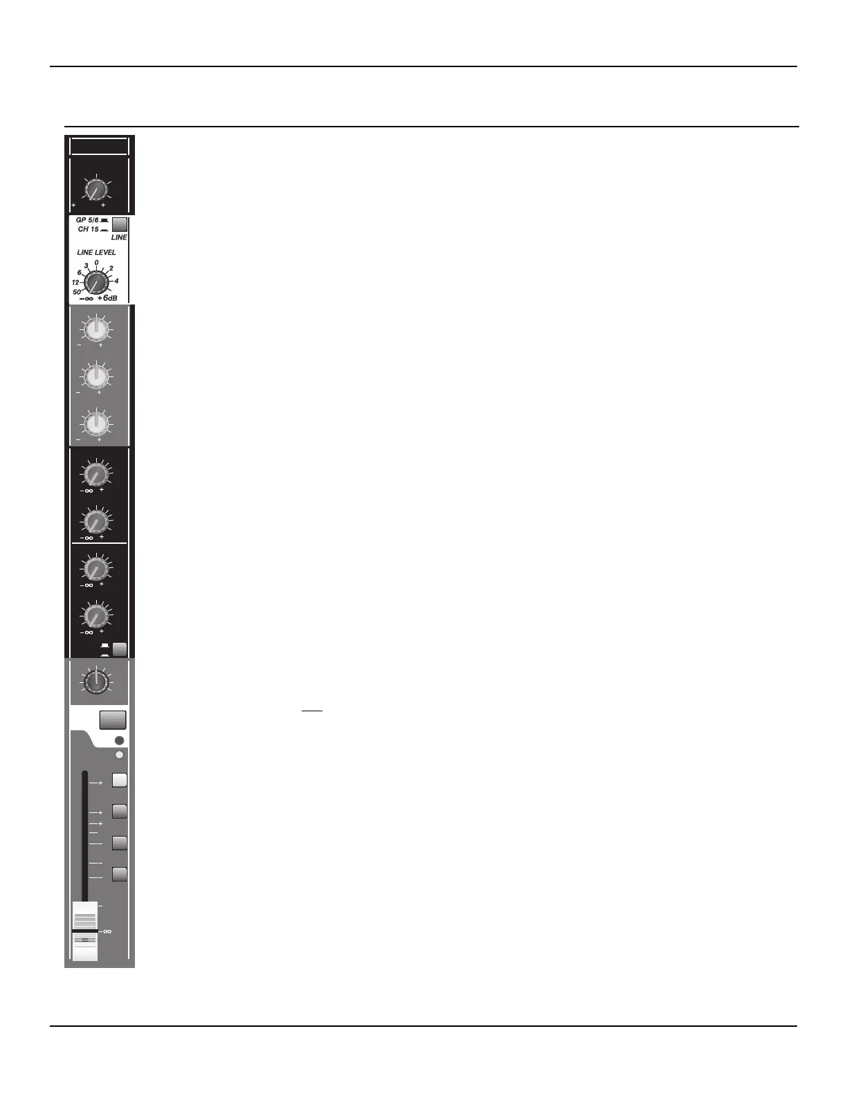 FADER 60 mm precision fader controls the channel’s main audio after the final gain stage and before the
