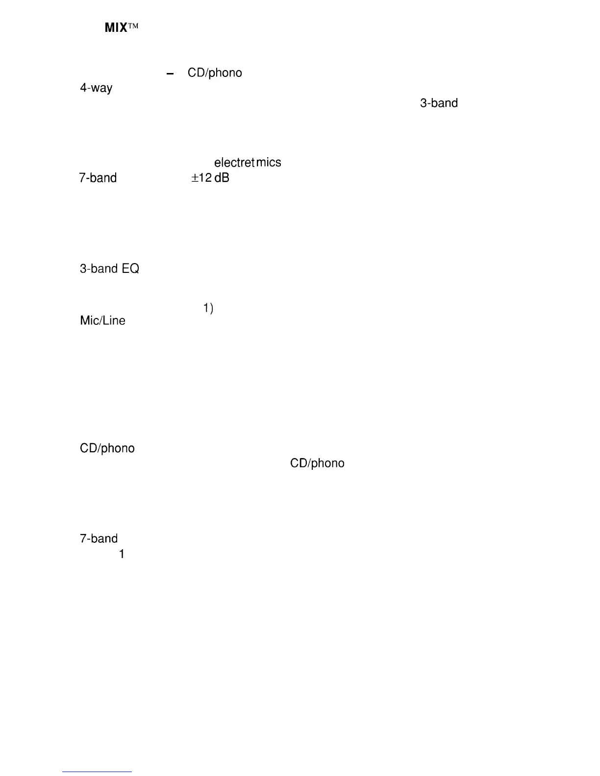 1 Microphone mixing bus with manual music over-ride switch, 3-band EQ, and