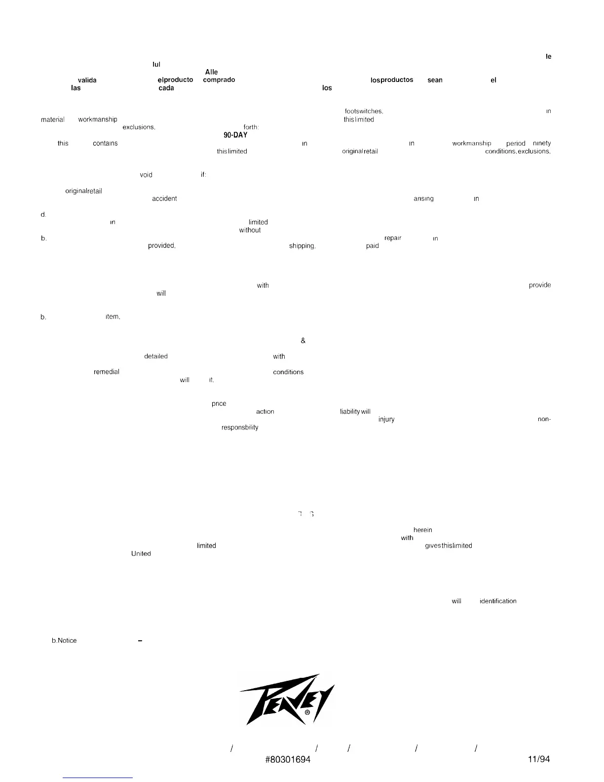 product, at Peavey’s option, and provrded, however, that, in any case, all costs of shrpping, if necessary, are paid by you, the purchaser.