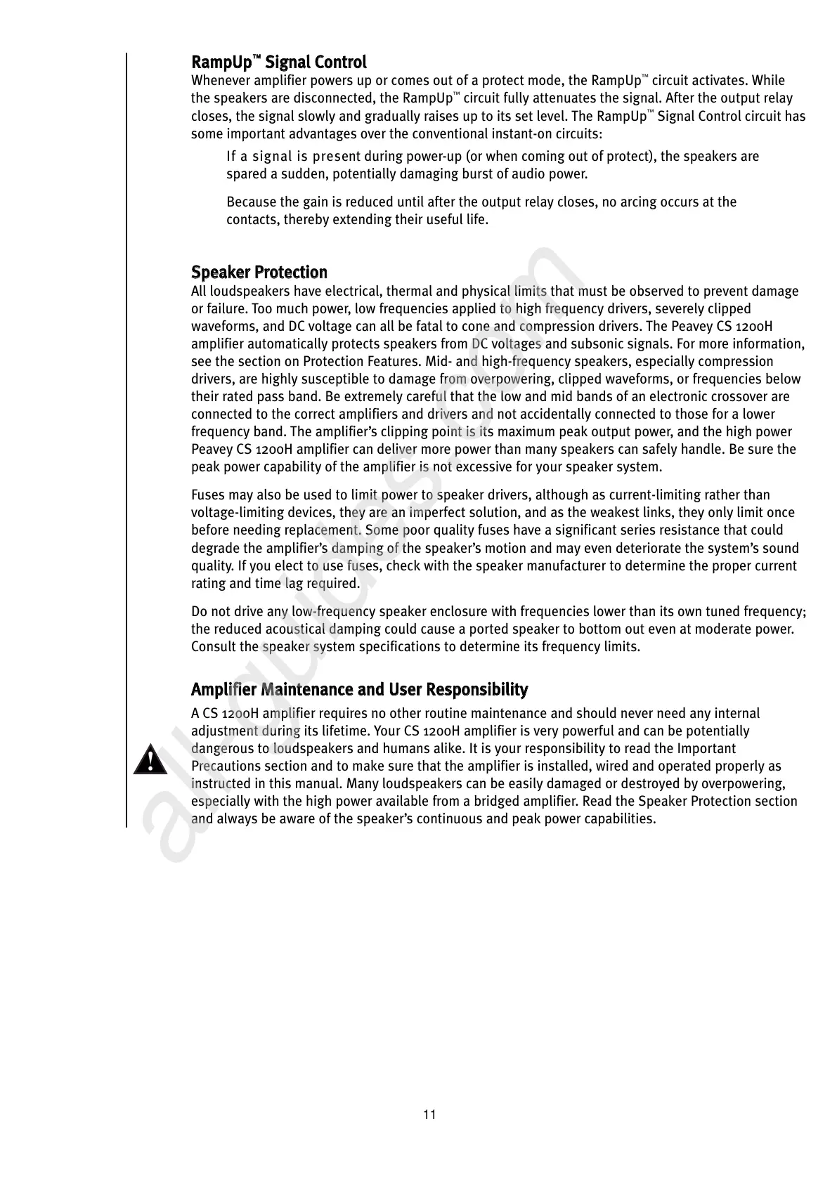 adjustment during its lifetime. Your CS 1200H amplifier is very powerful and can be potentially
