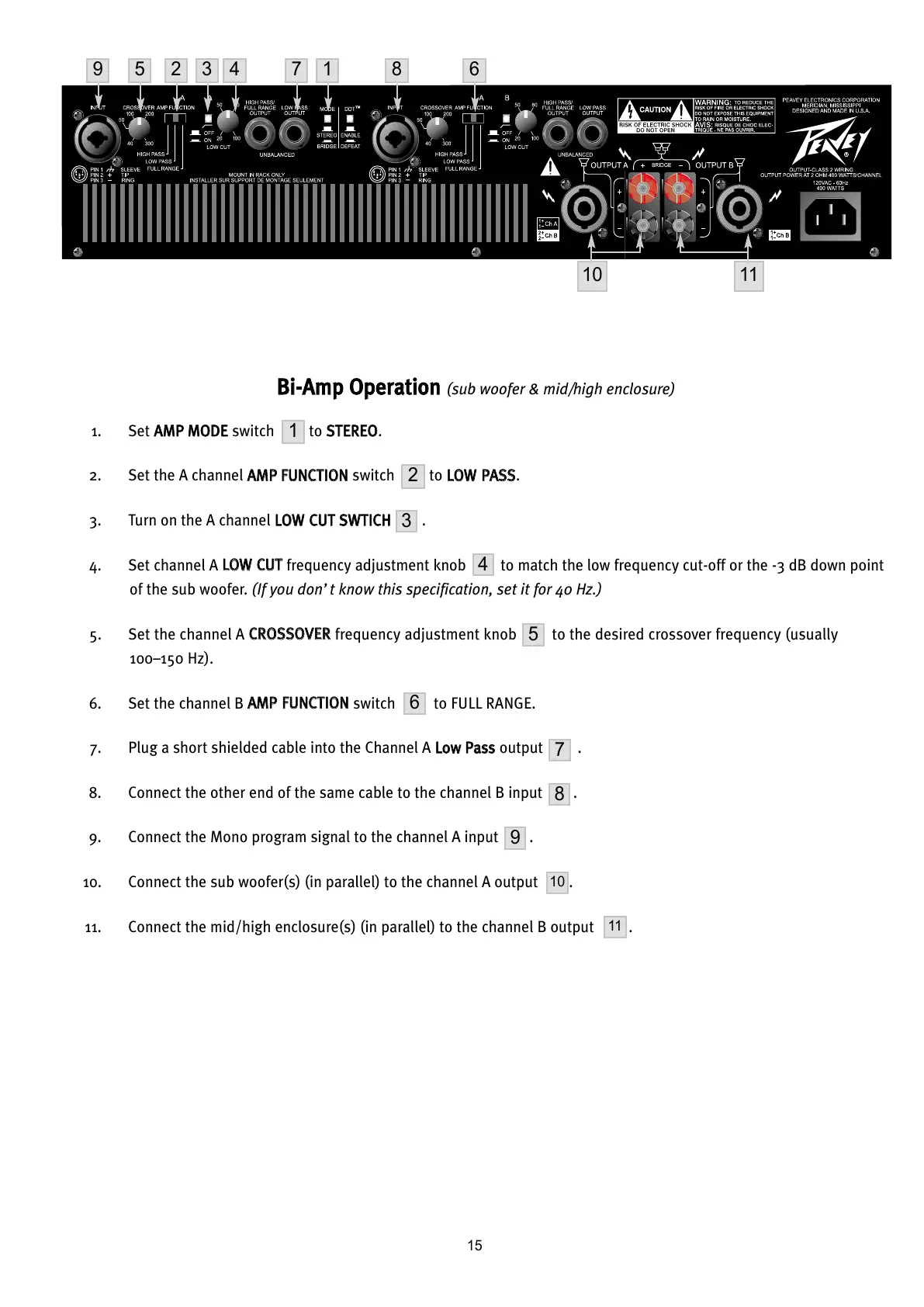10. Connect the sub woofer(s) (in parallel) to the channel A output .