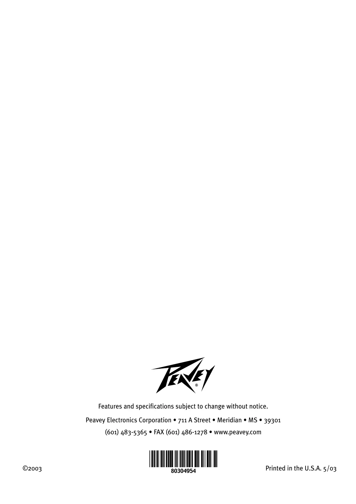 (601) 483-5365 FAX (601) 486-1278 www.peavey.com