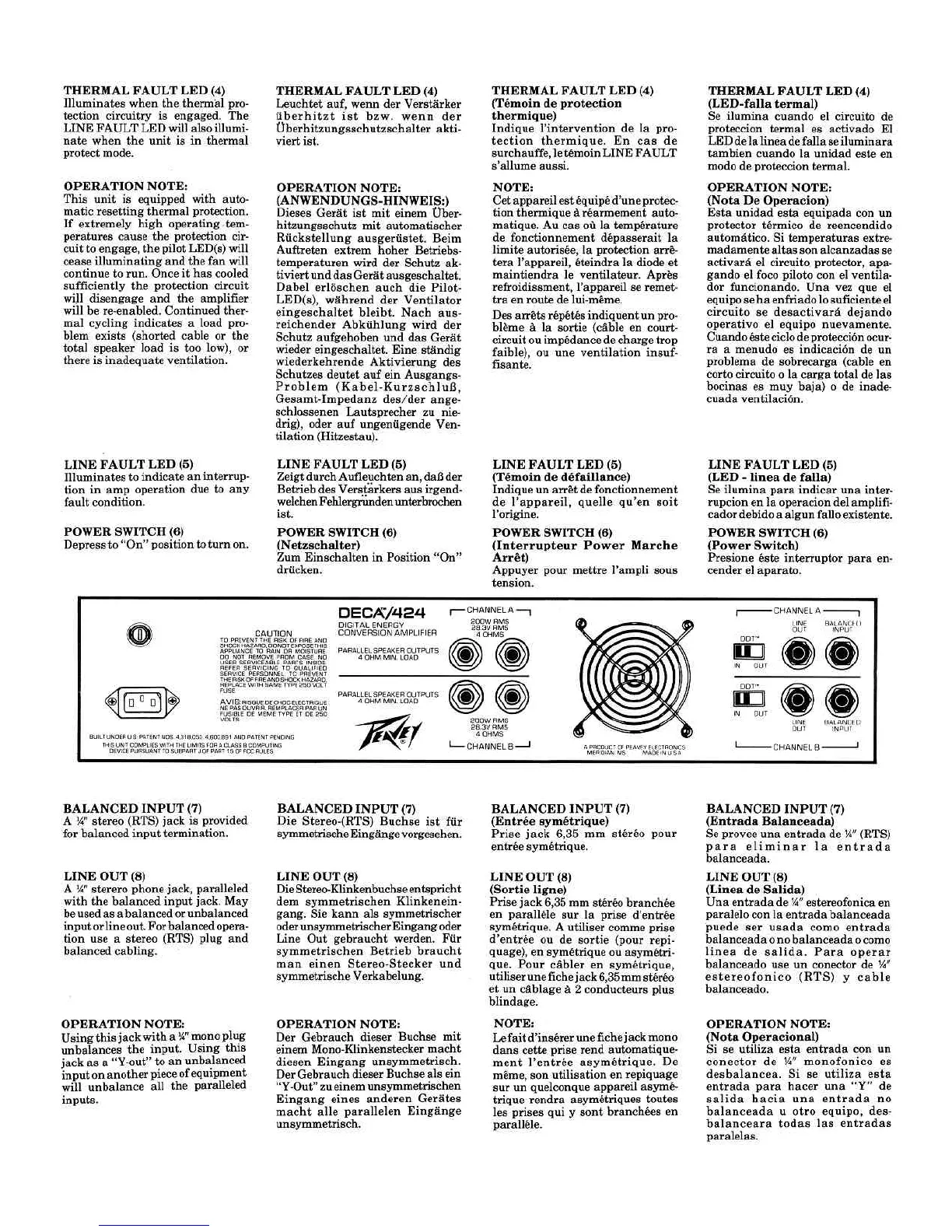 Peavey DECA 424 - Thermal Fault LED; Line Fault LED; Power Switch; Balanced Input;Line out