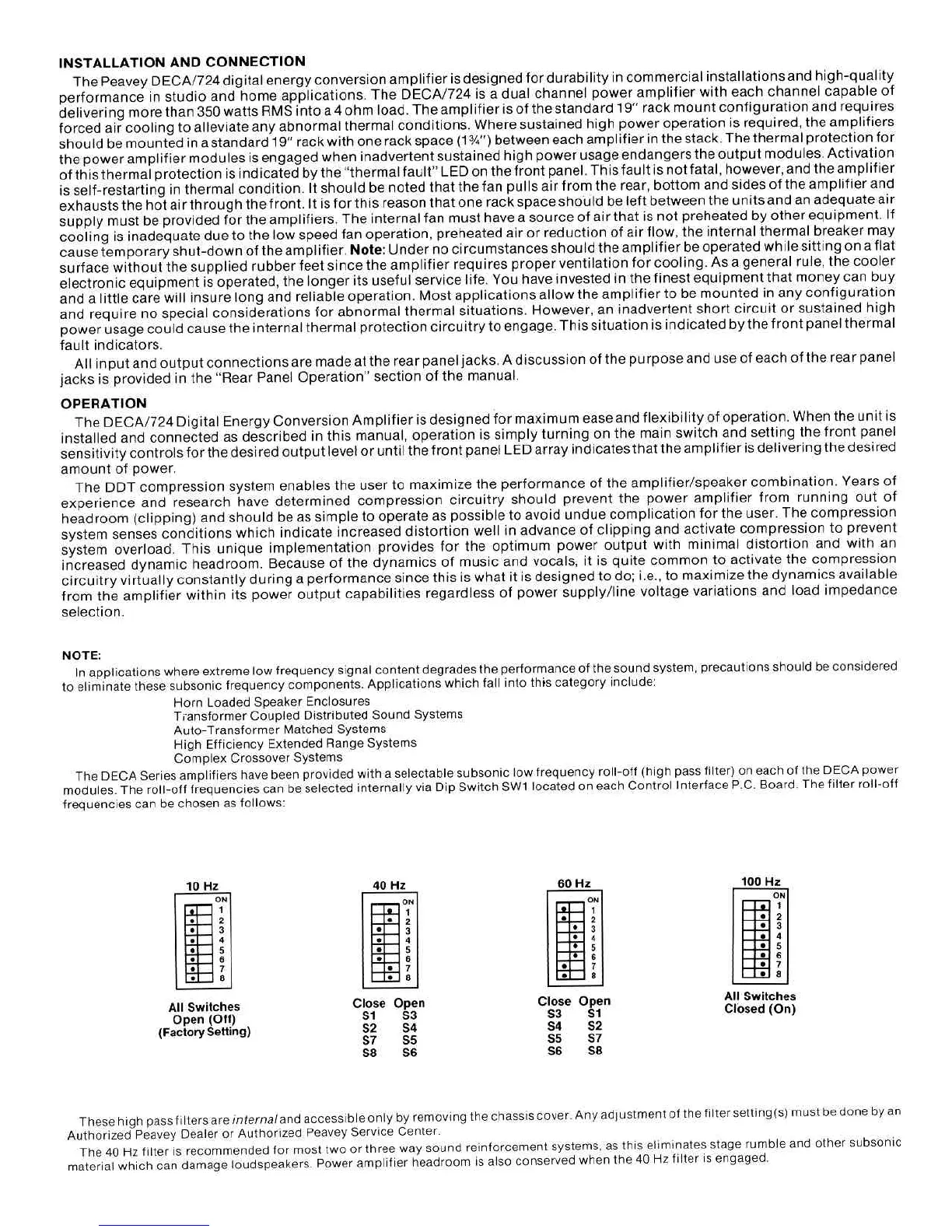 Peavey DECA 724 - Installation and Connection; Operation