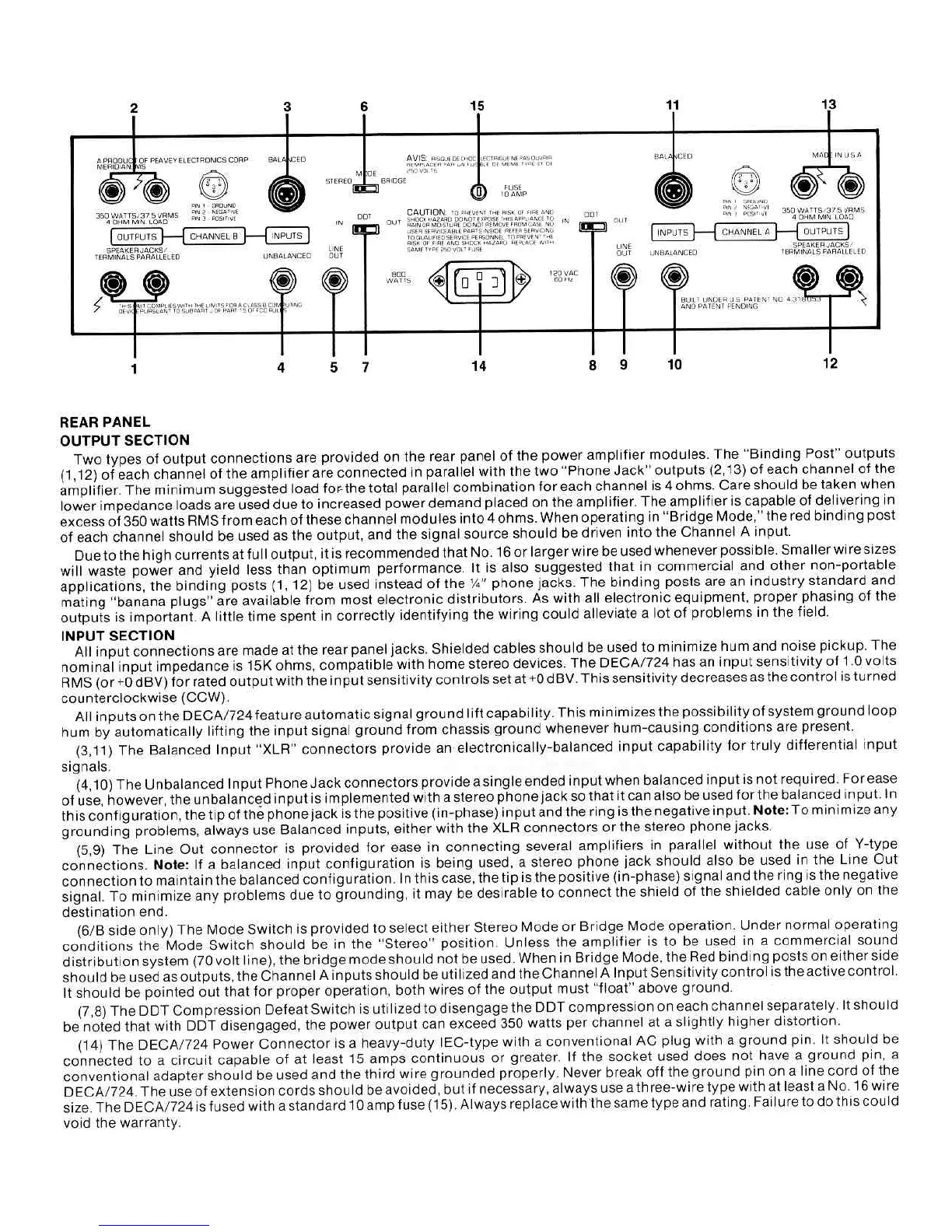 Peavey DECA 724 - Rear Panel; Output Section; Input Section