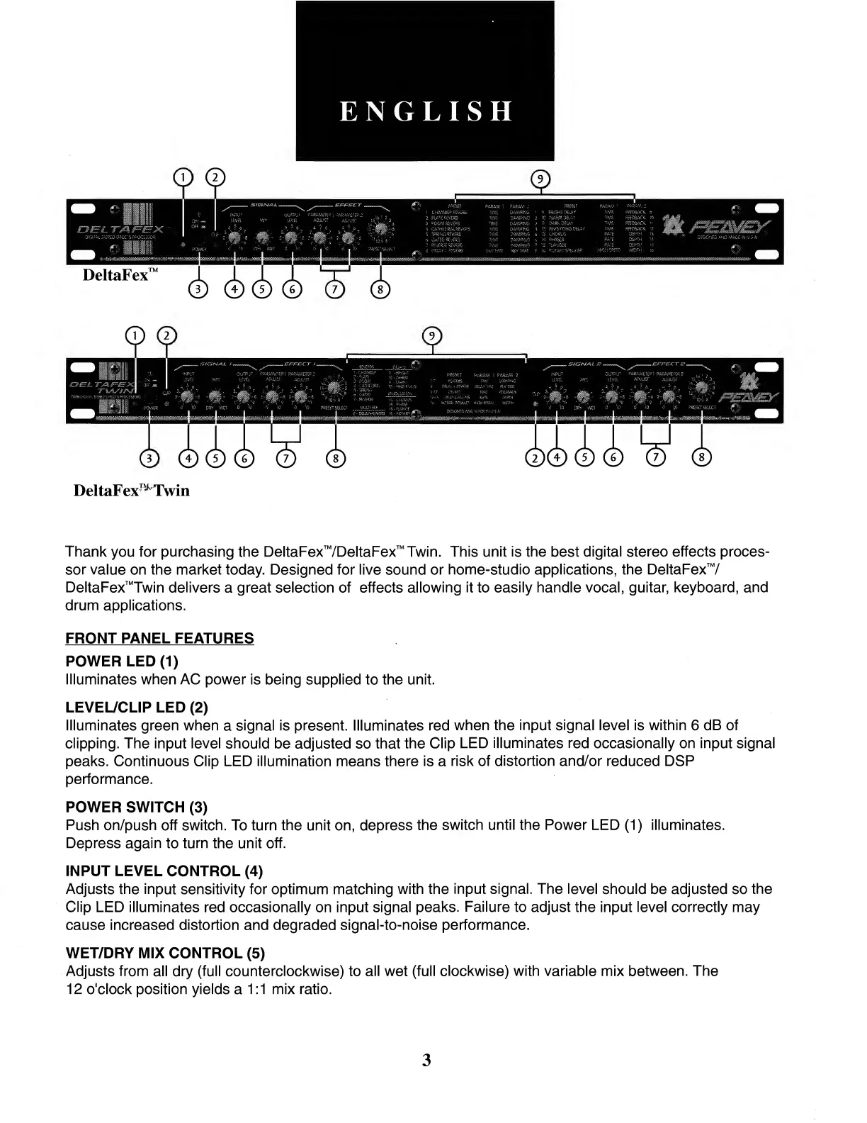 Peavey DeltaFex - Power Switch; Input Level Control