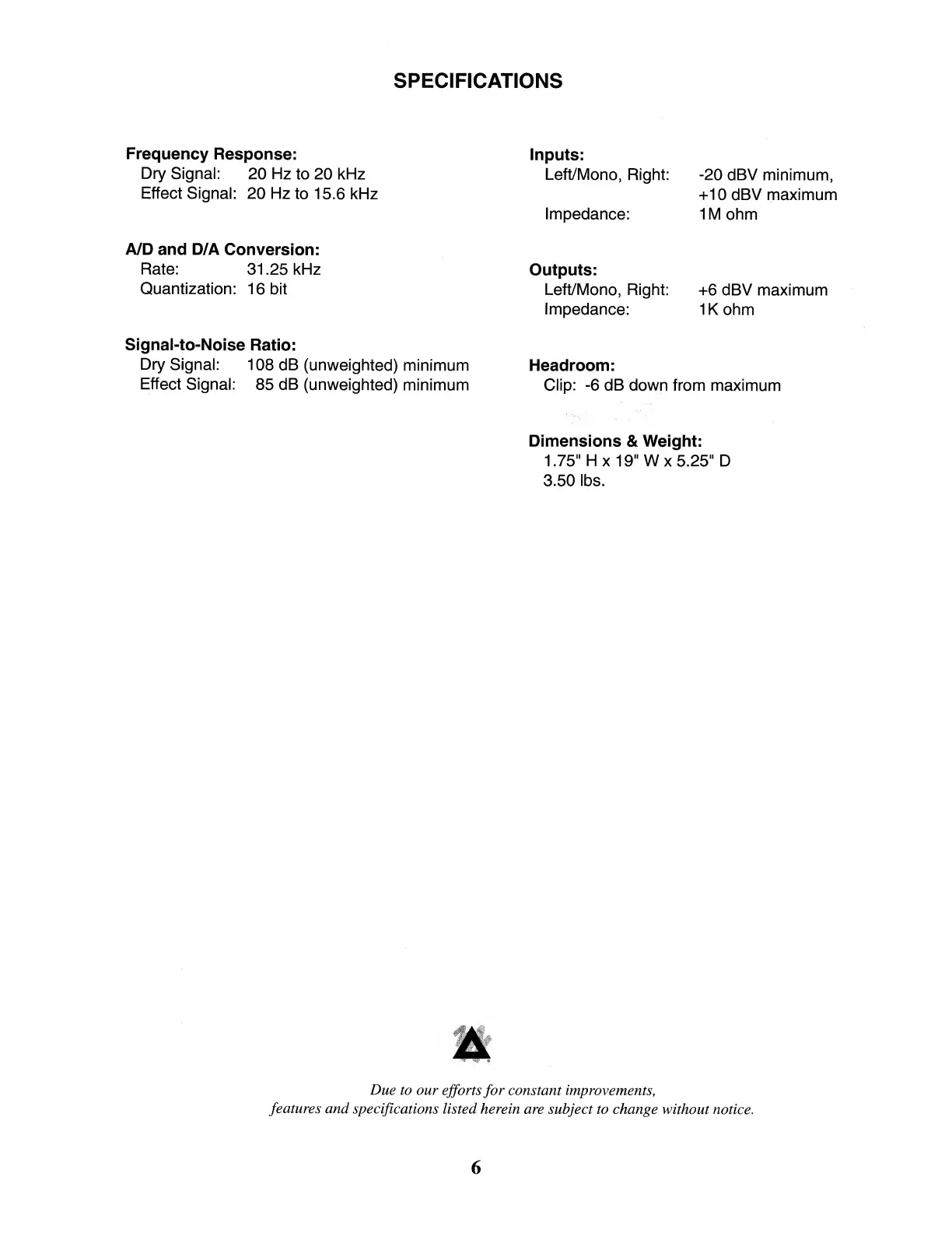 Peavey DeltaFex - Specifications