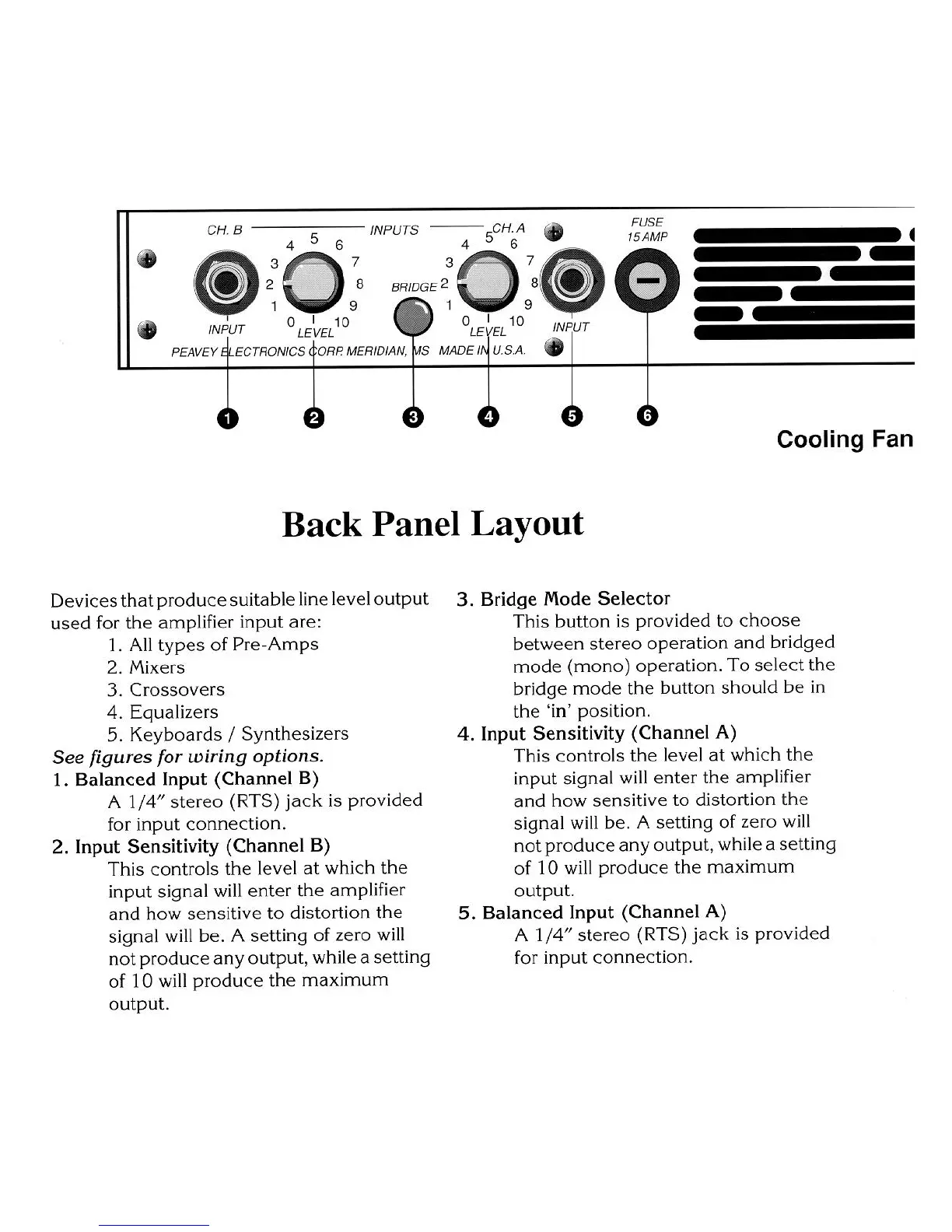 Peavey DPC 1000 - Back Panel Overview; Input Connections; Input Sensitivity Controls; Bridge Mode Selector