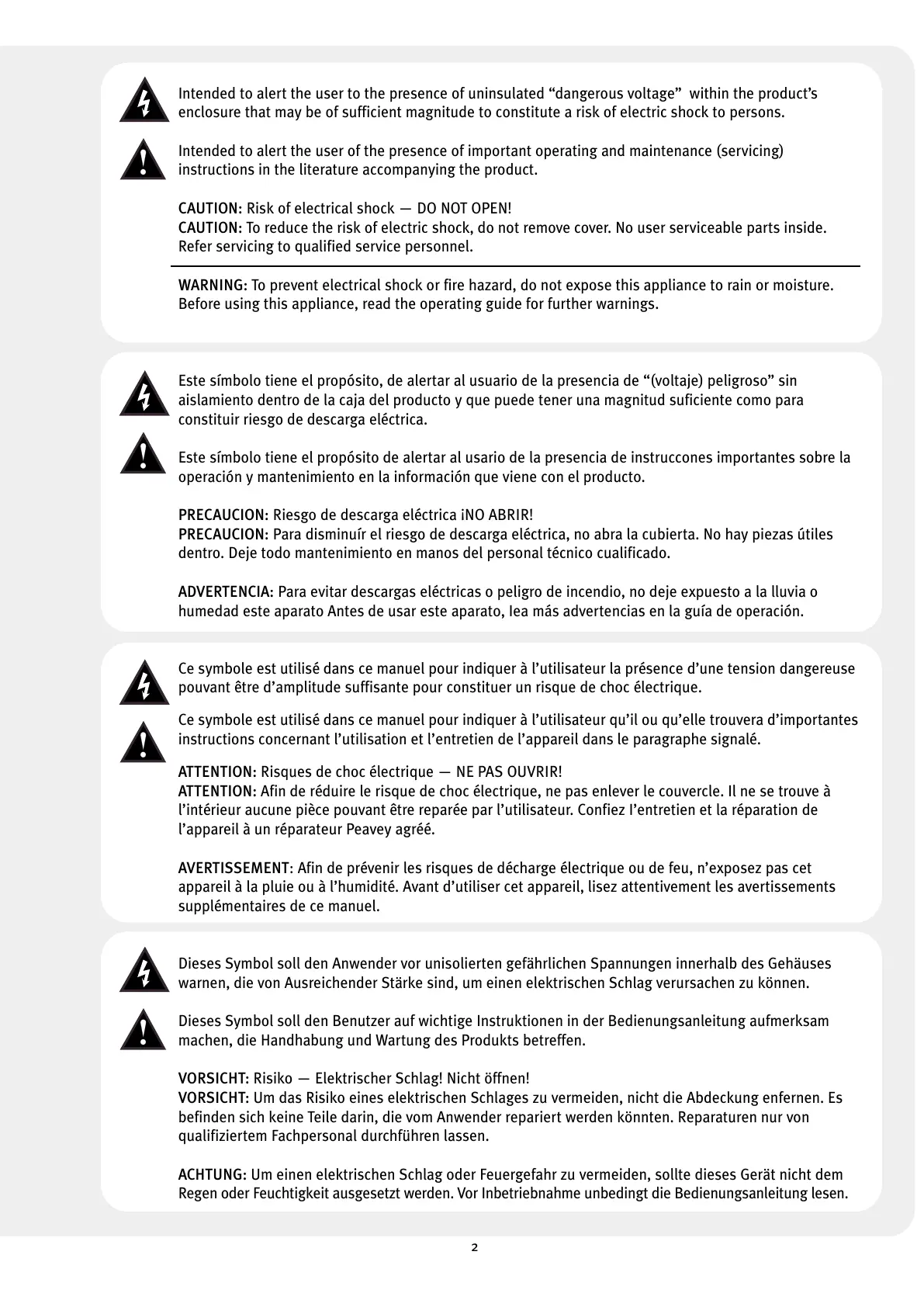 VORSICHT: Risiko — Elektrischer Schlag! Nicht öffnen!