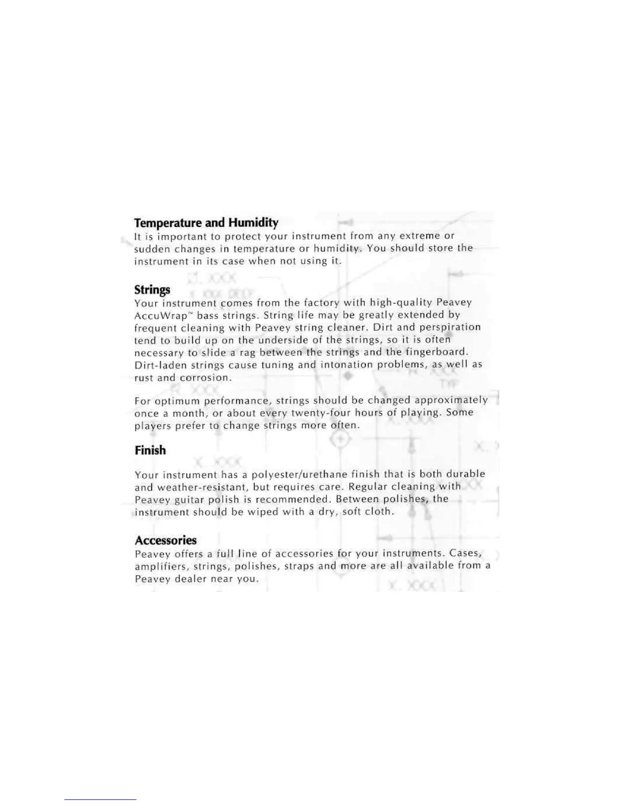 Peavey Fury - Temperature and Humidity; String Care and Replacement; Instrument Finish Maintenance; Available Accessories