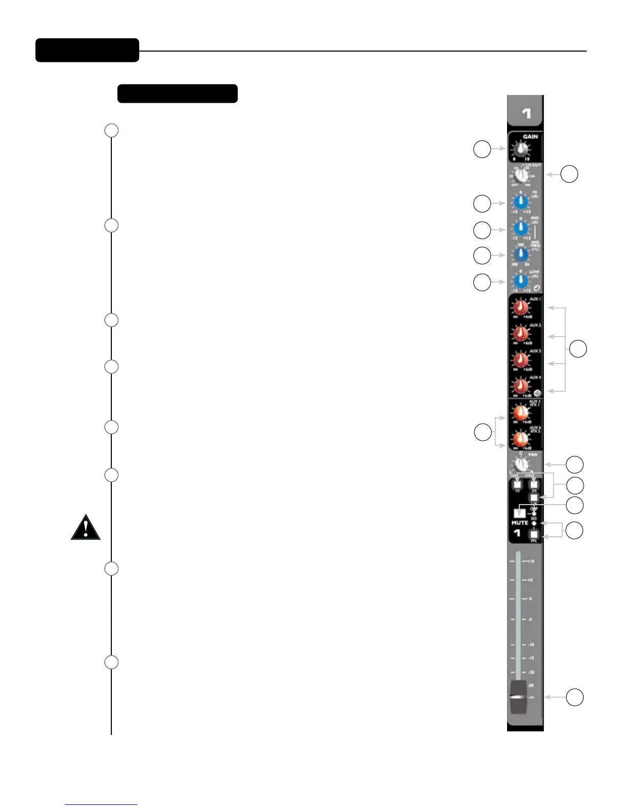 Tämä säädin asettaa kanavan nimellistason. Tulotasoa voidaan säätää laajal-