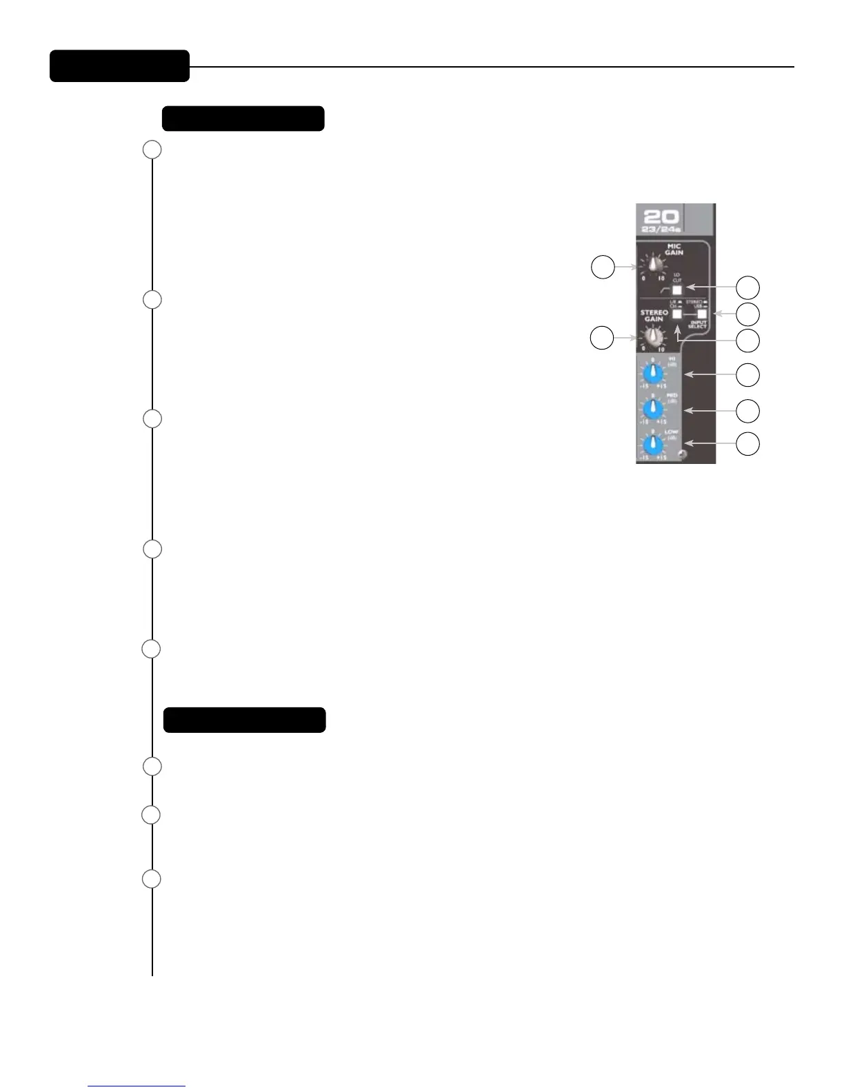 ulkona, stereolinjalähtöjen signaali ohjataan Stereo Gain -säätimeen (15). Kun kytkin on painettuna,
