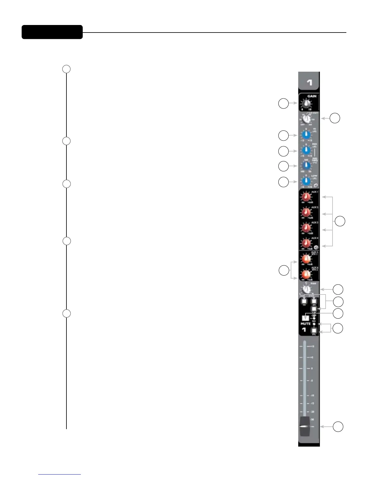 ample, with the channel Bus Assign switch (10) in the 1/2 position, rotating