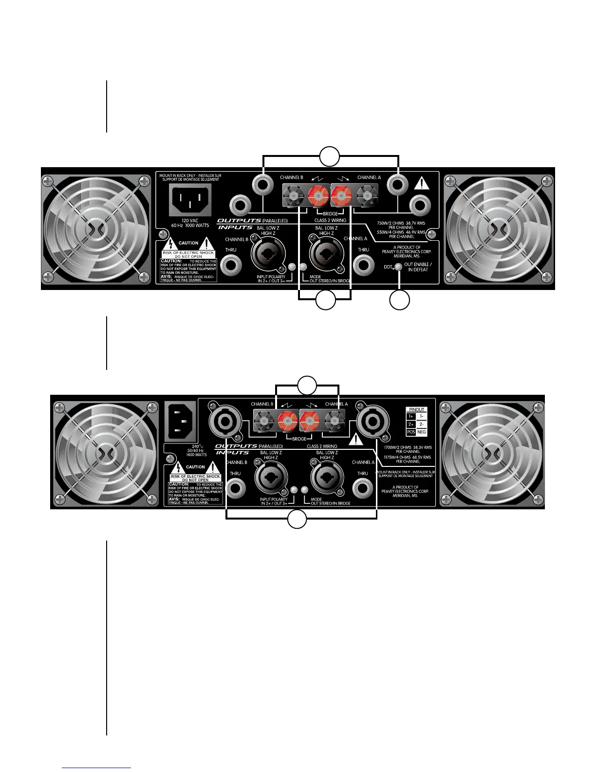 Cada amplificador de la serie GPS ofrece dos secciones separadas de salida con salidas paralelas. El tipo