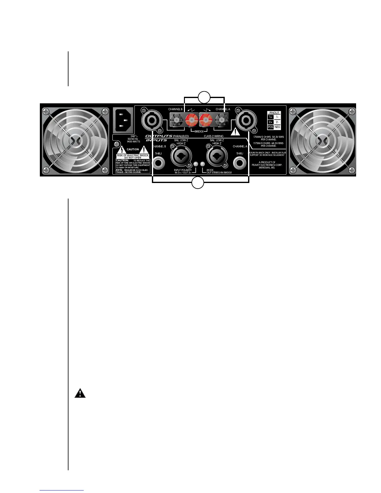 panneau arrière. Il y a deux prises parallèles de 6,3 mm par canal qui portent l’étiquette “CANAL A” ou
