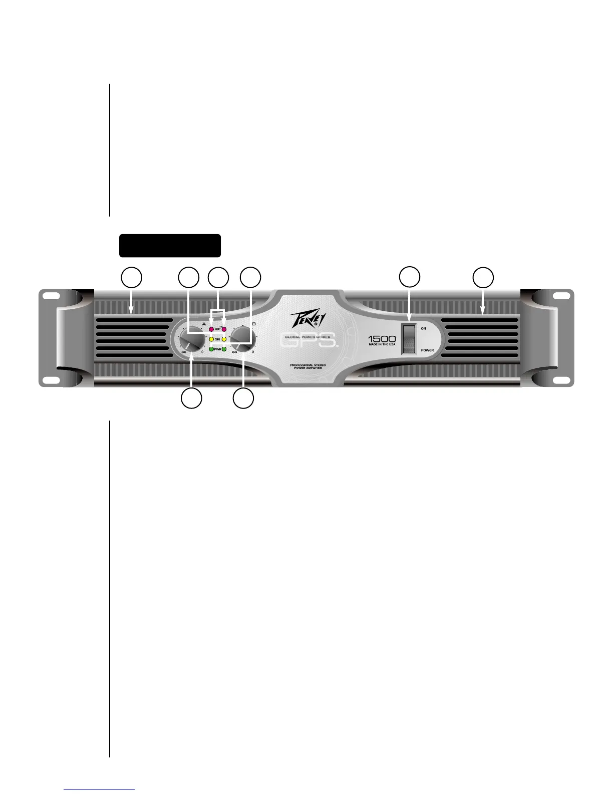 amplificateur de la Série GPS. Le Commutateur d’alimentation et le voyant DEL sont expliqués dans une