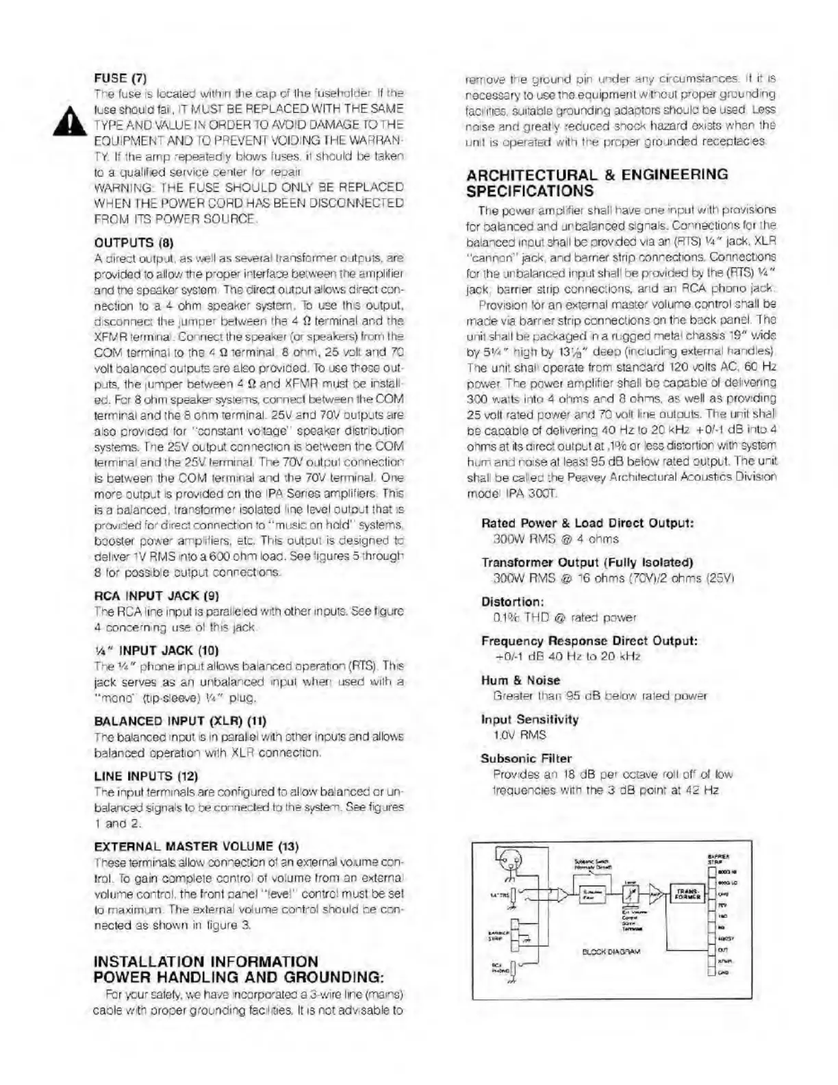 Peavey IPA 300T - Fuse (7); Outputs (8); Rca Input Jack (9); A Input Jack (10)